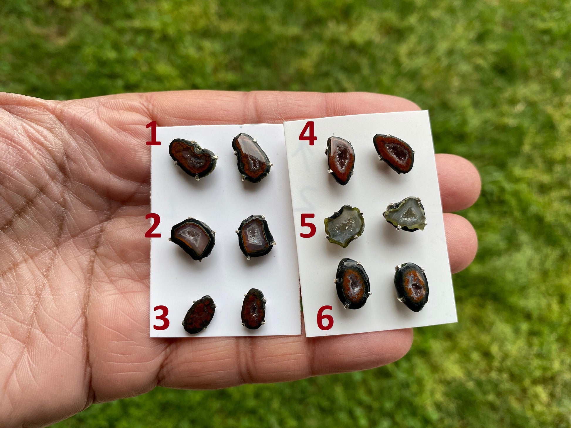 Raw Geode Stud Earrings, 92.5 Sterling Silver, Geode Crystal Earrings, Raw Crystal Prong Earrings, Tabasco Geode Post Earring, Druzy Earring