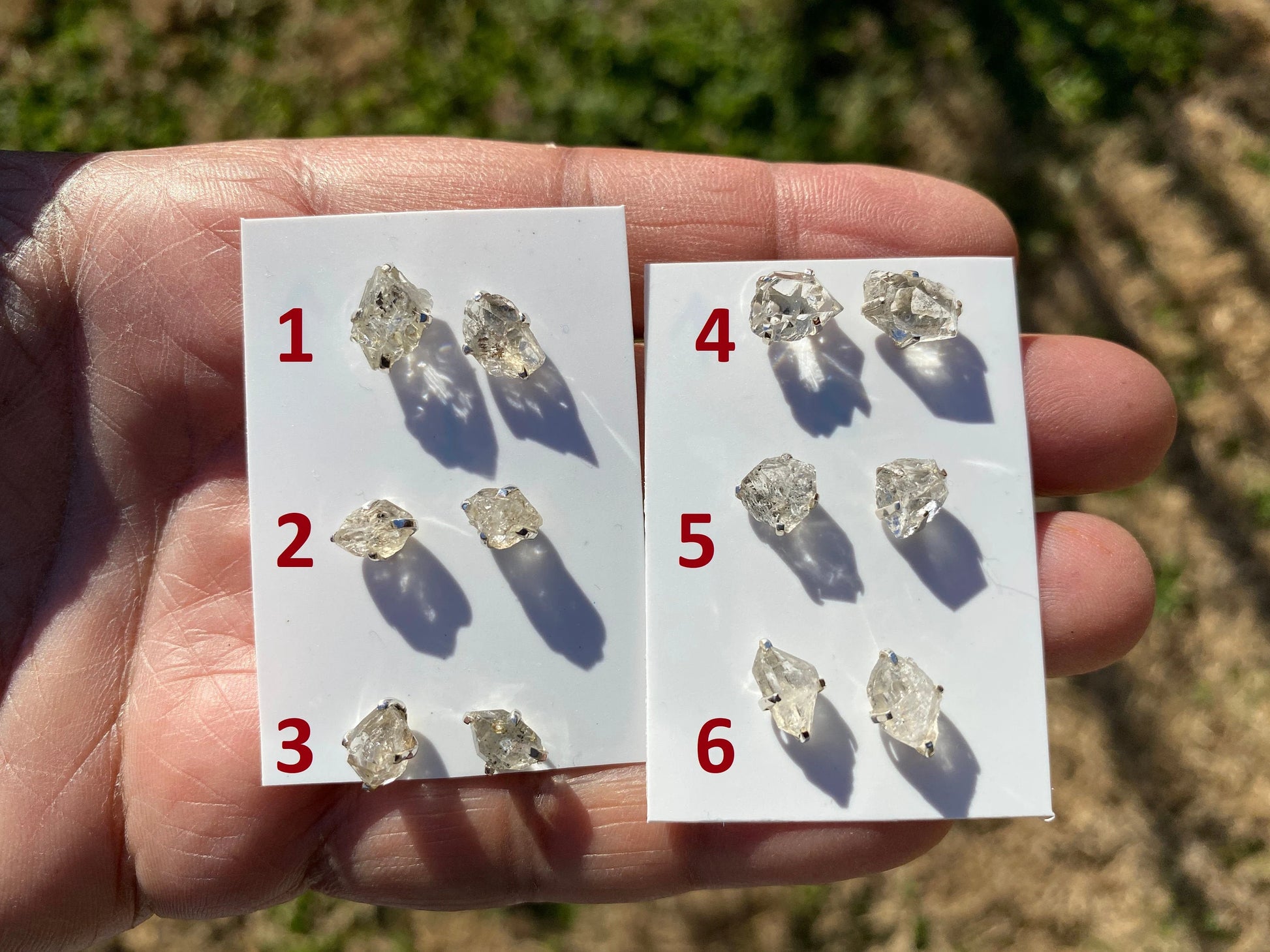 This listing is for 1 pair.At wholesale price!!! These raw Herkimer Diamond gemstone Stud Earring made with 92.5 Sterling Silver were handcrafted in Nepal. A unique birthstone gift. Measurement of Stone approximately 6-10 mm long, 4-7 mm wide (measuring the widest part of the stone),...