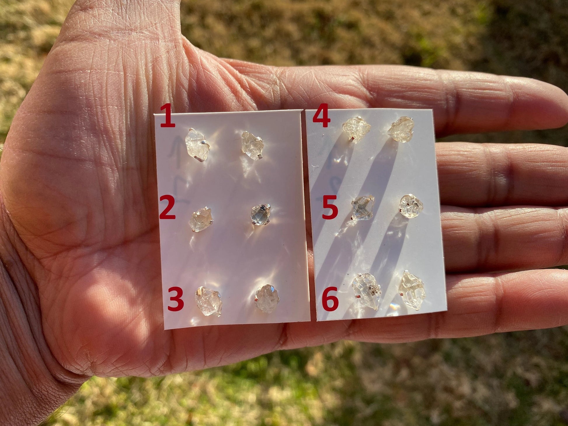 This listing is for 1 pair.At wholesale price!!! These raw Herkimer Diamond gemstone Stud Earring made with 92.5 Sterling Silver were handcrafted in Nepal. A unique birthstone gift. Measurement of Stone approximately 6-10 mm long, 4-7 mm wide (measuring the widest part of the stone),...
