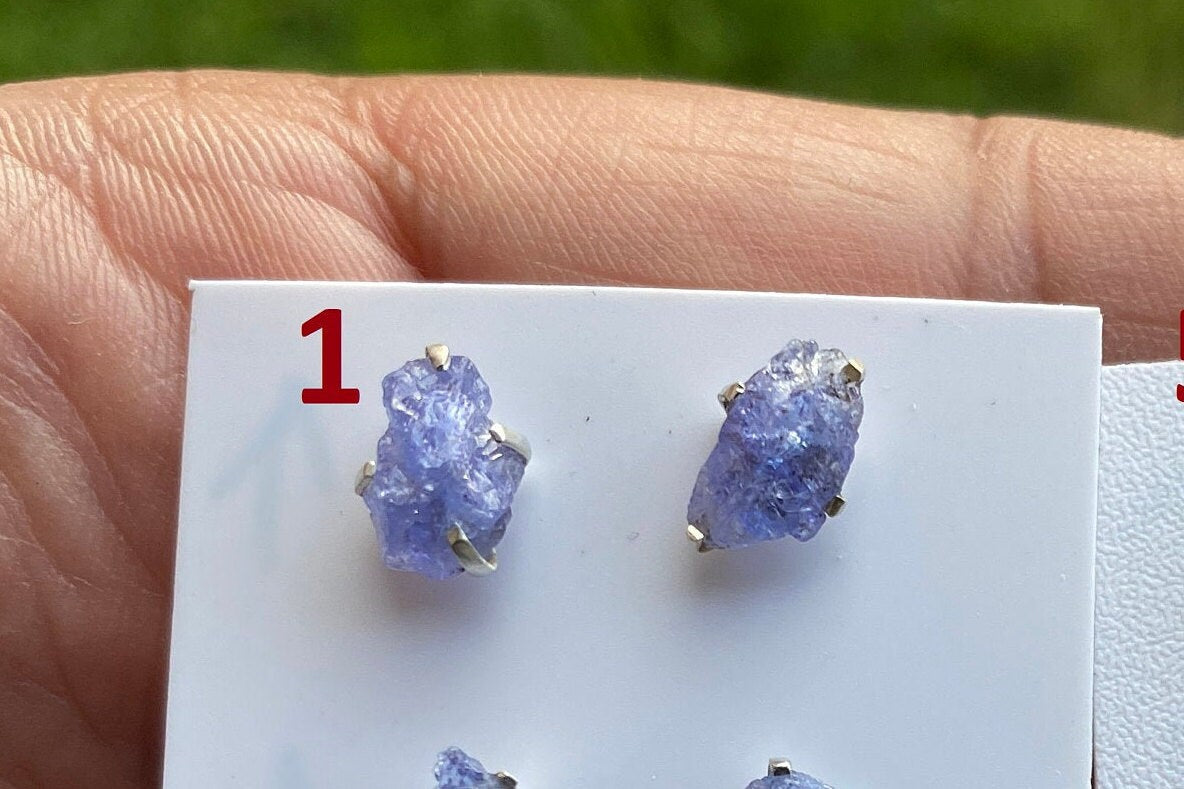 Raw Lapis Lazuli Natural Gemstone Stud Earrings, 92.5 Sterling Silver, Raw Natural Energy Stone, Protection Jewelry, Birthday Gift