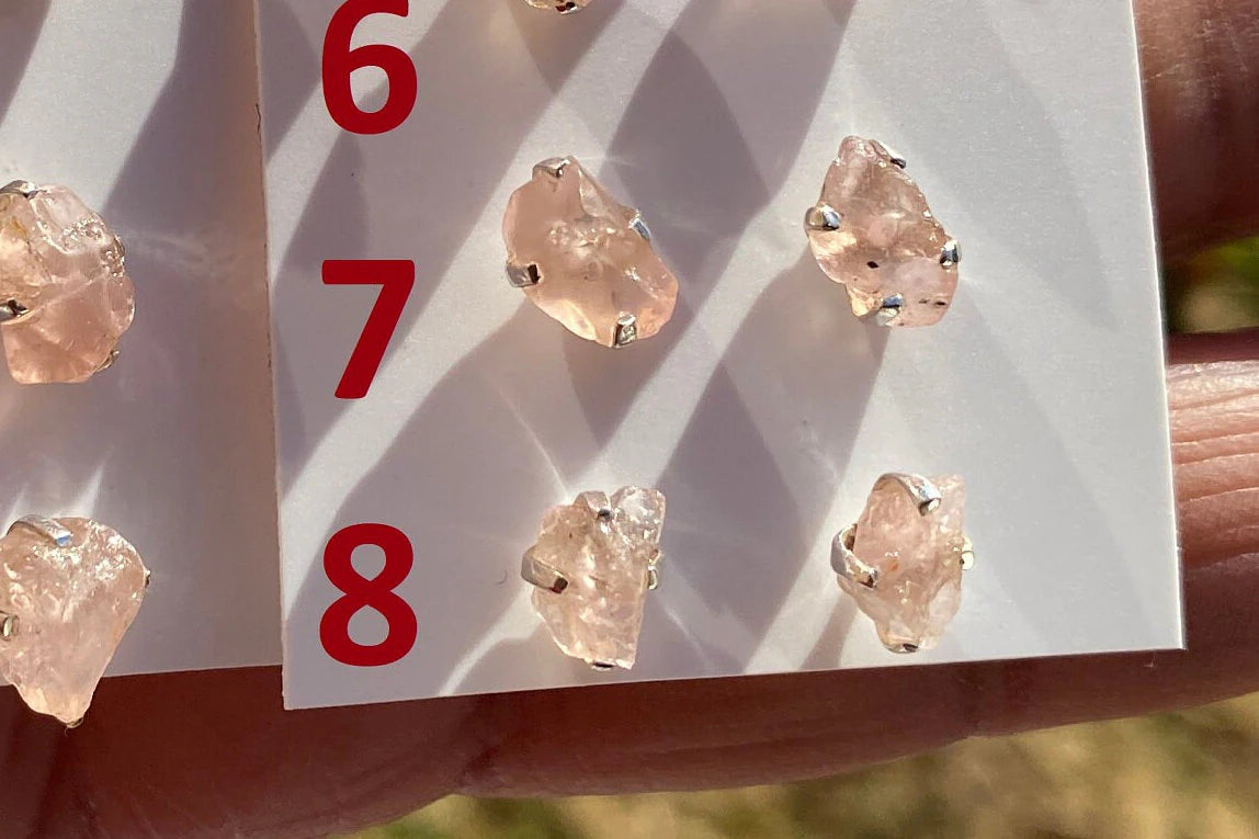 Raw Natural Morganite Gemstone Stud Earrings, Sterling Silver, Rough Morganite Stud Earrings, Morganite Jewelry, Prong Earring, Post Earring