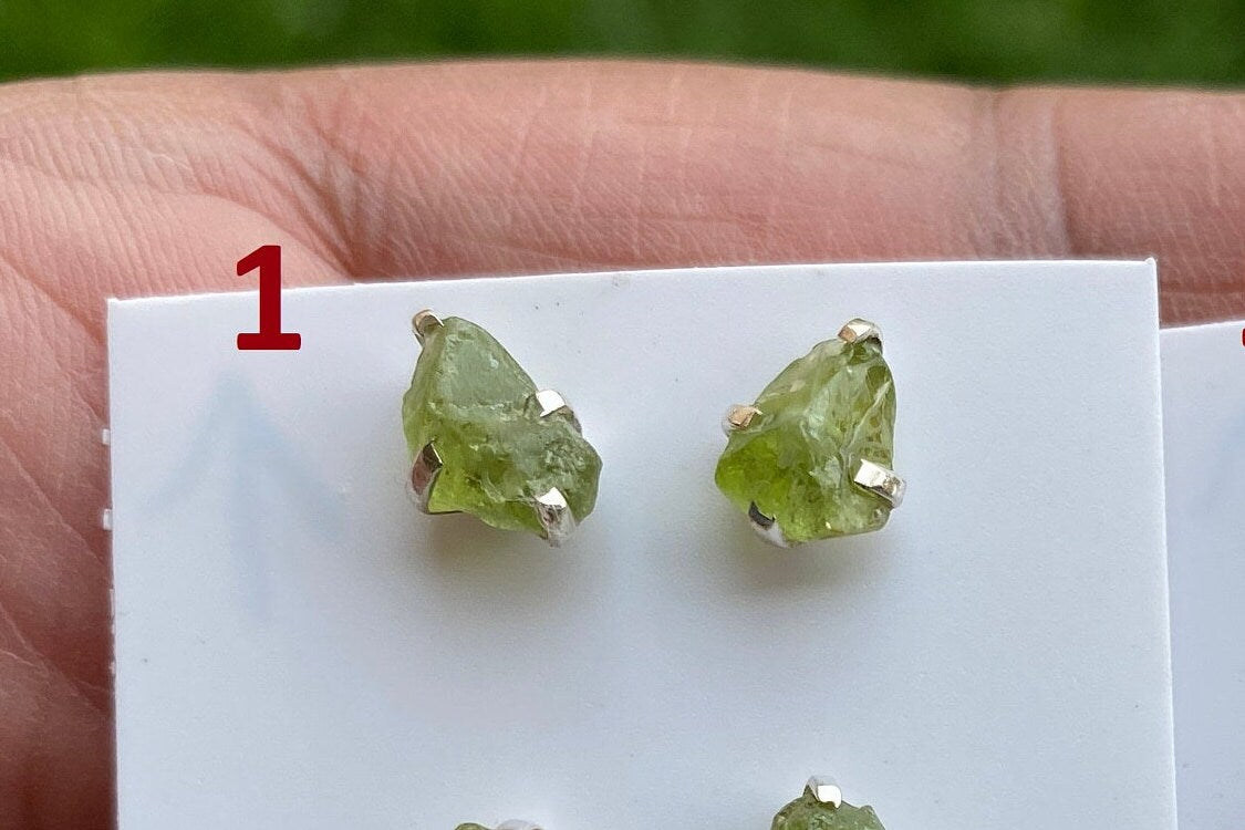 Raw Natural Peridot Gemstone Sterling Silver Stud Earrings, Peridot Earrings, Prong Stud Earring, August Birthstone, Ear Stud, Bridesmaid