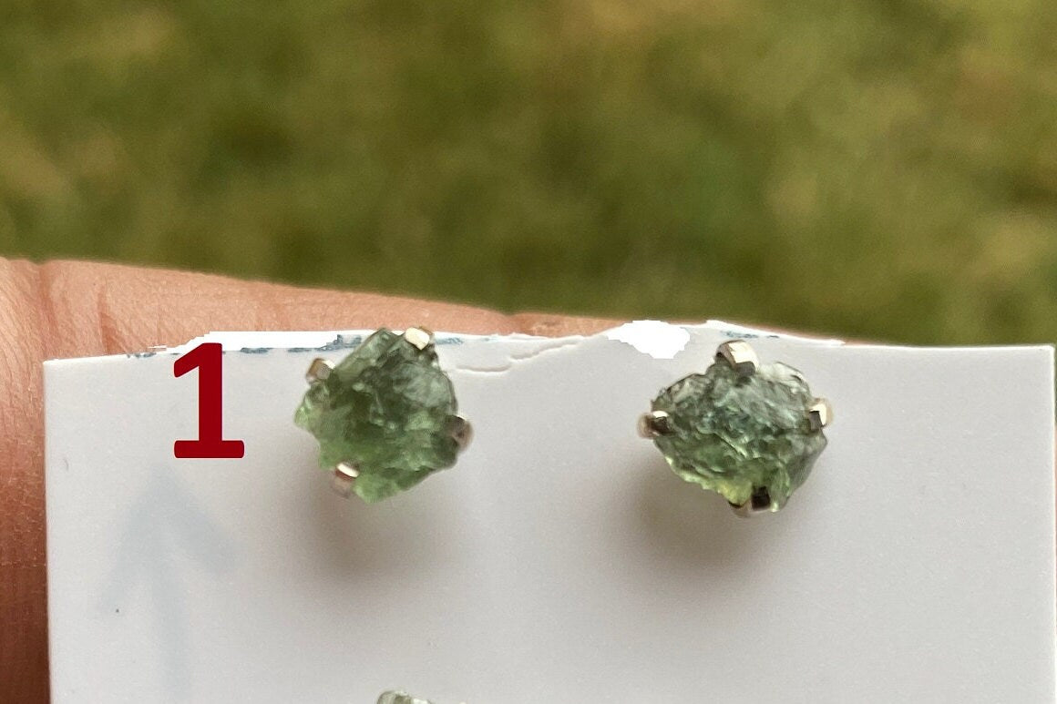 Raw Natural Peridot Gemstone Sterling Silver Stud Earrings, Peridot Earrings, Prong Stud Earring, August Birthstone, Ear Stud, Bridesmaid