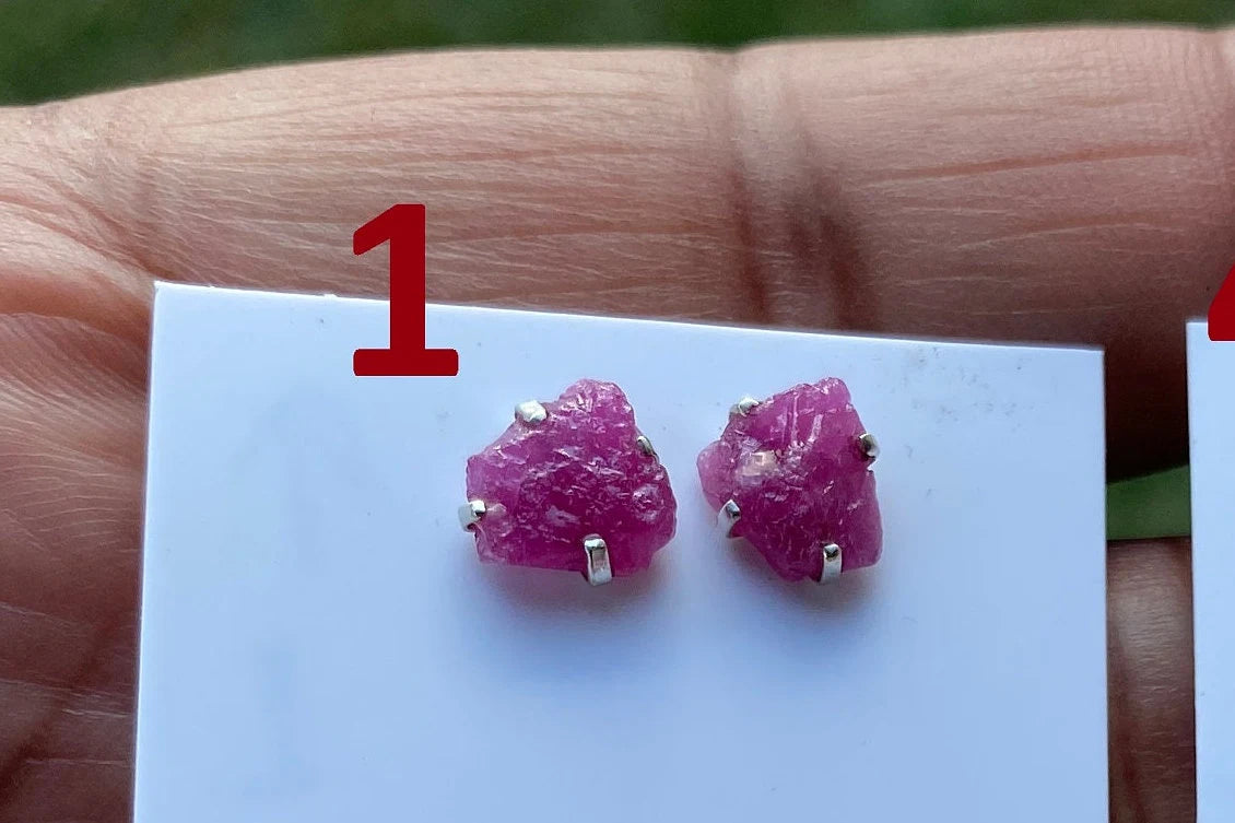 This listing is for 1 pair.At wholesale price!!! These raw Ruby gemstone Earring Stud made with 92.5 Sterling Silver Earring were handcrafted in Nepal. A unique gift for JULY Birthstone. Measurement of Stone approximately 6-7 mm long, 4-7 mm wide (measuring the widest part of...