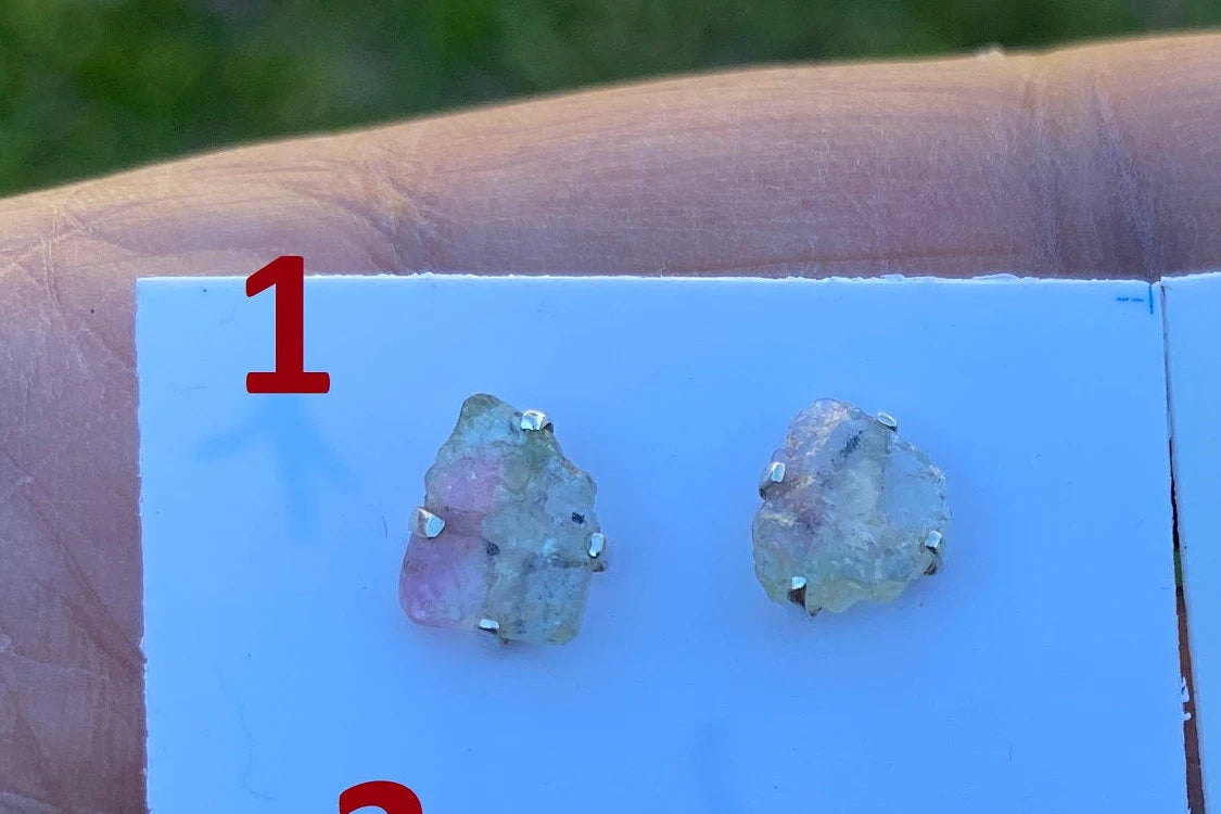 Raw Watermelon Tourmaline Sterling Silver Stud Earrings, Elegant, Dainty, Stylish Natural Stone, Rough Gemstone Earring, Raw Tourmaline Stud