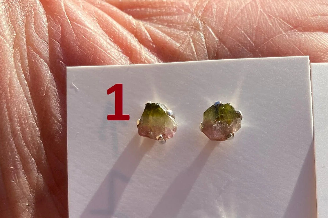 Raw Watermelon Tourmaline Stud Earring, Sterling Silver Studs, Rough Gemstone Earrings, Raw Tourmaline Stud Earrings, Natural Stone Jewelry