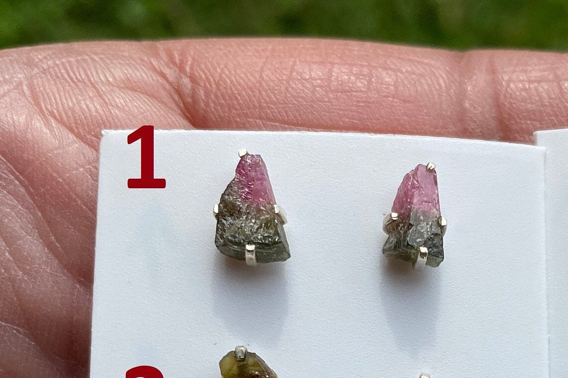 Raw Watermelon Tourmaline Stud Earring, Sterling Silver Studs, Rough Gemstone Earrings, Raw Tourmaline Stud Earrings, Natural Stone Jewelry