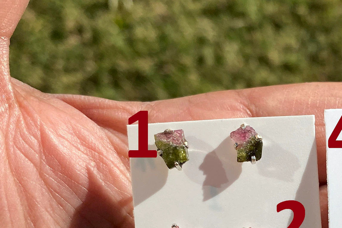 These raw Watermelon Tourmaline gemstone Earring Stud made with 92.5 Sterling Silver Earring were handcrafted in Nepal. A unique gift for October Birthstone.
