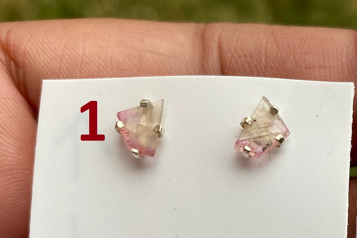 Raw Watermelon Tourmaline Studs Earring, Sterling Silver Studs, Rough Gemstone Earrings, Raw Tourmaline Stud Earrings, Natural Stone Jewelry