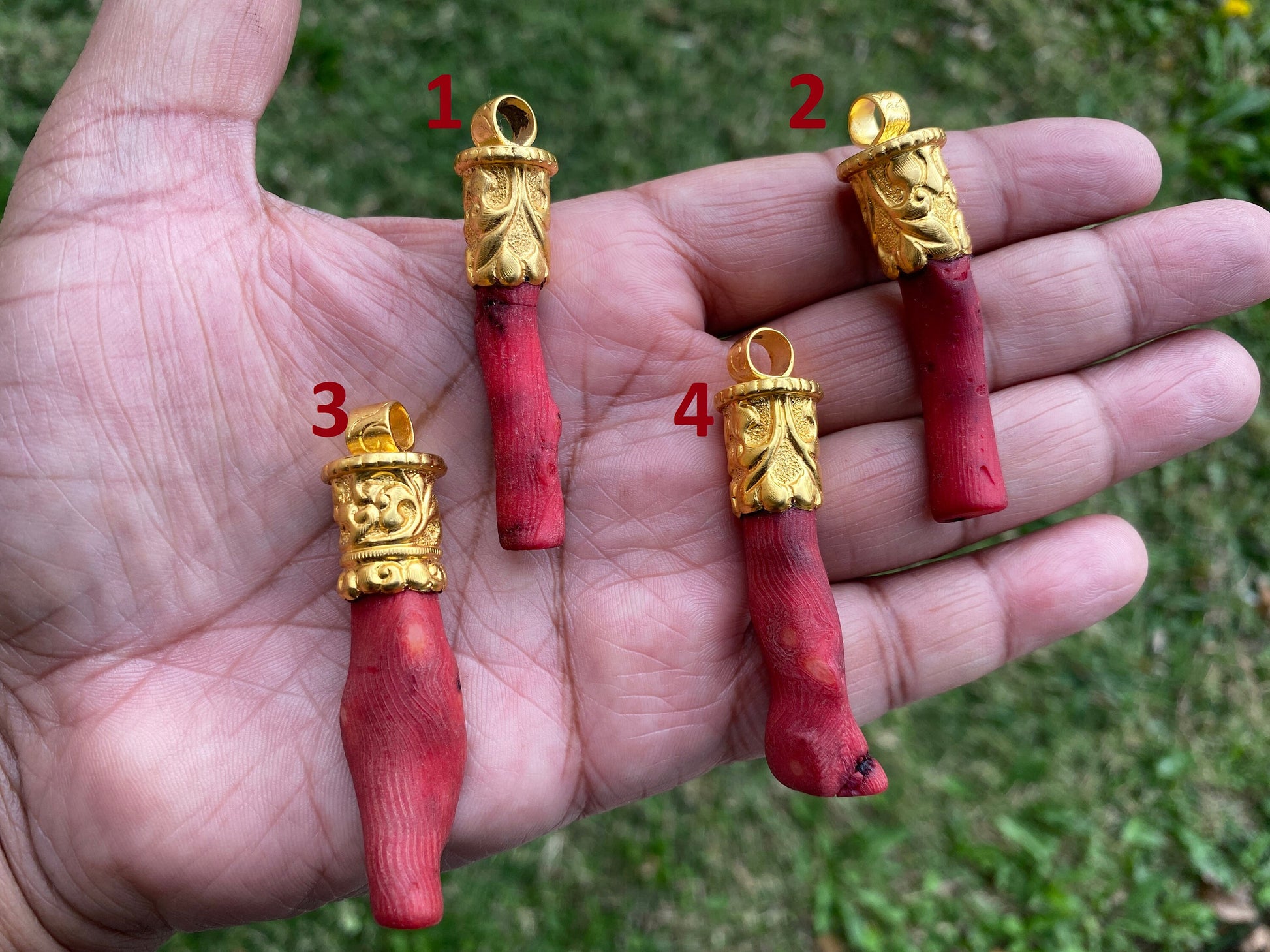 The combination of matte gold and matte dyed coral is pretty enchanting. This Gorgeous pendant is hand-carved with a remarkable detail. This Tibetan designs pendant is handmade in Nepal and adorned by a beautiful pendant. Perfectly bohemian in style, these tribal beauties come from the Himalayas.Made with high quality 18K Matte Gold overlay over brass with anti-tarnish finish so that It will be durable. These are sure to make an impact on your jewelry project. This would be a great addition to your necklace.Beauty and magic of this pendant that is unmatched as they are handmade and are one of a kind. With the nature of them being handmade, each product is unique in its own right and no two products are the exact same. Please note: you will receive a random pendant.Disclaimer: Items are handmade so please note: Each item is unique may have some small imperfections. There can be a slight difference in actual color than shown in picture.Images may appear enlarged or smaller. Please refer to the measurements given. ✤ Keep in mind:1. Product VarianceAs the jewelry is handmade in nature, the items may experience variance in texture, shape, color, and finish. This also comes with some imperfections, which sets them apart from jewelry made in a factory – that being said please read the description thoroughly and view the pictures before you make your final purchase. As always, please don’t hesitate to ask us if you have any questions as we are more than happy to provide you with utmost quality assurance. 2. Photography & ColorsDue to the fact that we photograph each of our items, some items may seem larger than the actual size and the colors may seem off as well, please make sure to read the dimensions in order to avoid problems that can be easily taken care of. We do our best to photograph the items with as much detail as possible, however, images can deceive the eye, again – feel free to reach us with any questions or concerns!