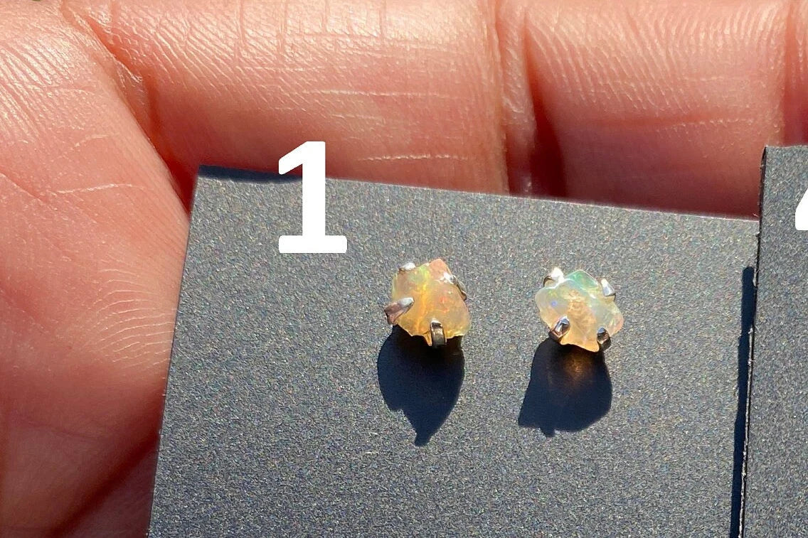 Rough Opal Studs Earrings, Sterling Silver Earrings, Gemstone Stud Earring, Silver Prong Earring, October Birthstone, Ethiopian Welo Opals