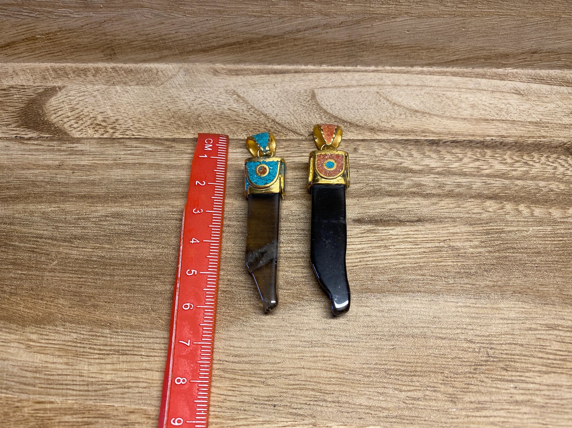 This listing is for 1 piece.At wholesale price!!!Measurement: approximately Length 35-57 mm (measuring from bail to bottom), width 18 mm from the widest side, bail size: 8 mm and weighs about 15 gm.The combination of matte gold with natural Smoky Quartz gemstone with Turquoise & Coral Inlaid is pretty enchanting. This Gorgeous pendant is hand-carved with a remarkable detail. This Tibetan designs pendant is handmade in Nepal and adorned by a beautiful pendant. Perfectly bohemian in style, these tribal beauties come from the Himalayas.Made with high quality 18K Matte Gold overlay over brass with anti-tarnish finish so that it will be durable. These are sure to make an impact on your jewelry project. This would be a great addition to your necklace.Beauty and magic of this pendant that is unmatched as they are handmade and are one of a kind. With the nature of them being handmade, each product is unique in its own right and no two products are the exact same. Please note: you will receive a random pendant.Disclaimer: Items are handmade so please note: Each item is unique may have some small imperfections. There can be a slight difference in actual color than shown in picture.Images may appear enlarged or smaller. Please refer to the measurements given. ✤ Keep in mind:1. Product VarianceAs the jewelry is handmade in nature, the items may experience variance in texture, shape, color, and finish. This also comes with some imperfections, which sets them apart from jewelry made in a factory – that being said please read the description thoroughly and view the pictures before you make your final purchase. As always, please don’t hesitate to ask us if you have any questions as we are more than happy to provide you with utmost quality assurance. 2. Photography & ColorsDue to the fact that we photograph each of our items, some items may seem larger than the actual size and the colors may seem off as well, please make sure to read the dimensions in order to avoid problems that can be easily taken care of. We do our best to photograph the items with as much detail as possible, however, images can deceive the eye, again – feel free to reach us with any questions or concerns!3. LiabilityDiscover Designs Inc. shall not be held responsible for any injuries, damages, or losses resulting from the use of products purchased from our shop. Therefore, by purchasing from our Etsy Store, you the costumer agree that all purchases and uses of products are responsibilities of the buyer. With that said, Discover Designs will not be held responsible for the use, misuse, or mishandling of any items and buyers assume all liabilities for the products they have purchased. The purchase of an item from Discover Designs demonstrates acceptance of this disclosure and releases Discover Designs and its affiliates from liabilities arising thereof. ✪Not a toy, not intended for use by, or in products intended for children 14 or under. May be harmful if swallowed.Thanks for stopping by!