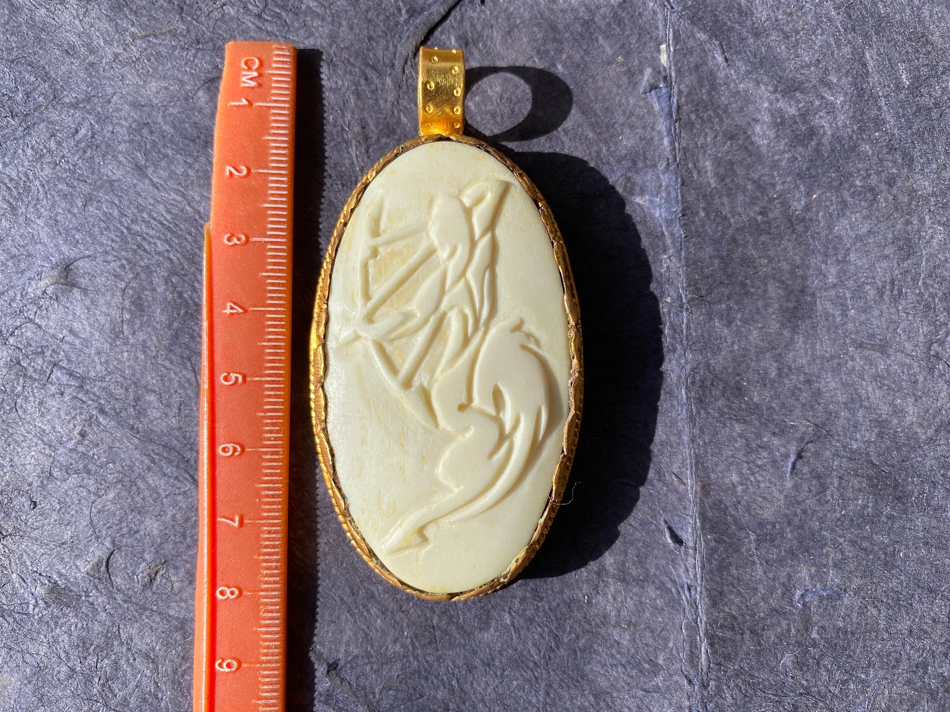 Sagittarius Zodiac Symbol Large Pendant, Hand Carved Buffalo Bone, 18K Brushed Gold Overlay, Horoscope Medallion Pendant, Astrology Jewelry