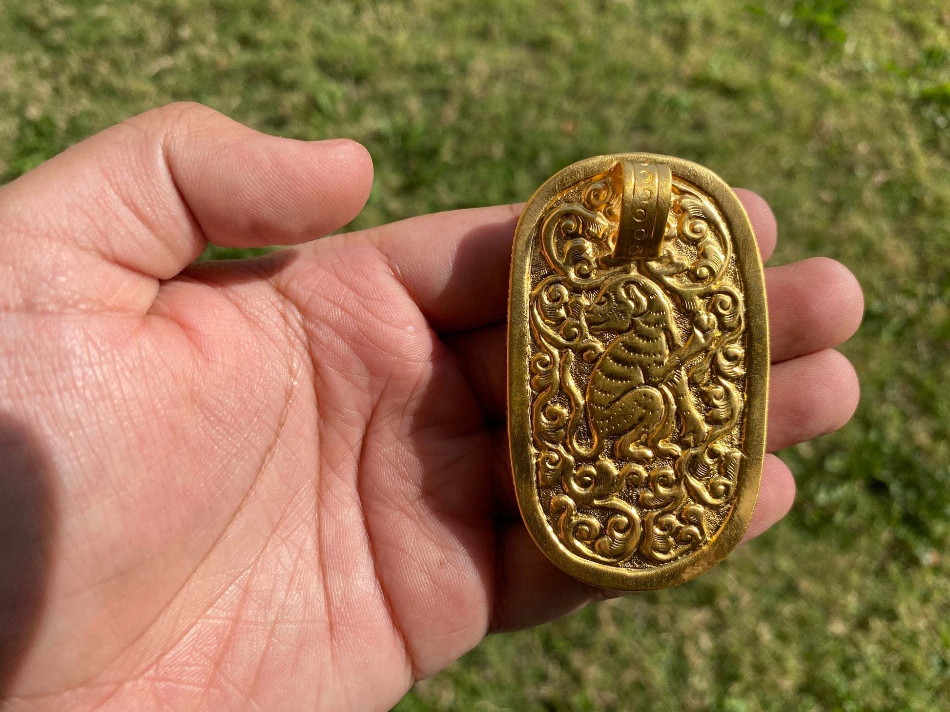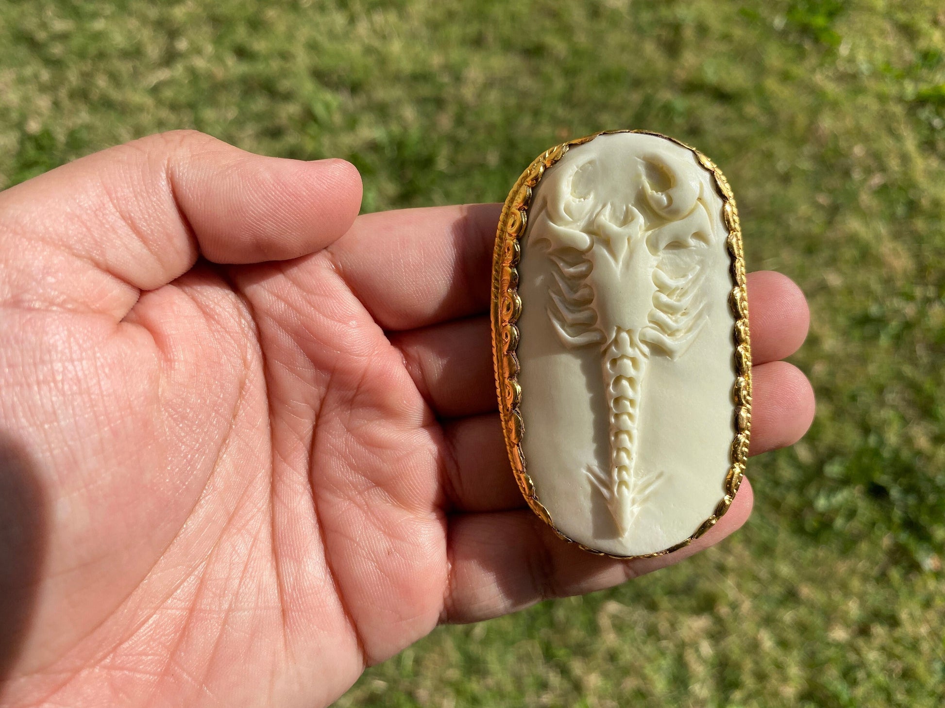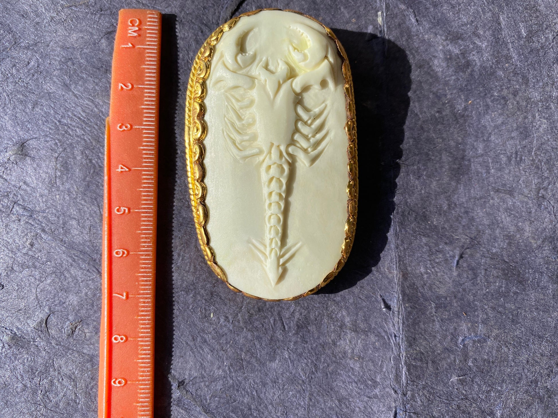 Scorpio Zodiac Sign Bone Pendant, Non Tarnish 18K Brushed Gold Overlay Over Brass, Horoscope, Medallion, Astrology Jewelry, Scorpion Design