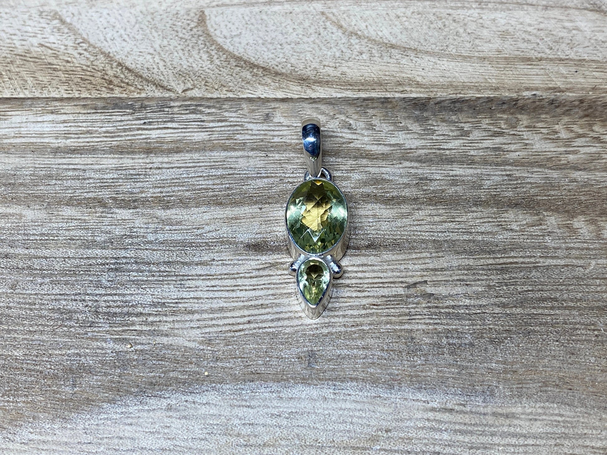 Silver Overlay Small Pendant, Faceted Green Amethyst Gemstone, Teardrop & Oval Shape, Handmade, Birthstone, for Necklace, Himalayan Jewelry