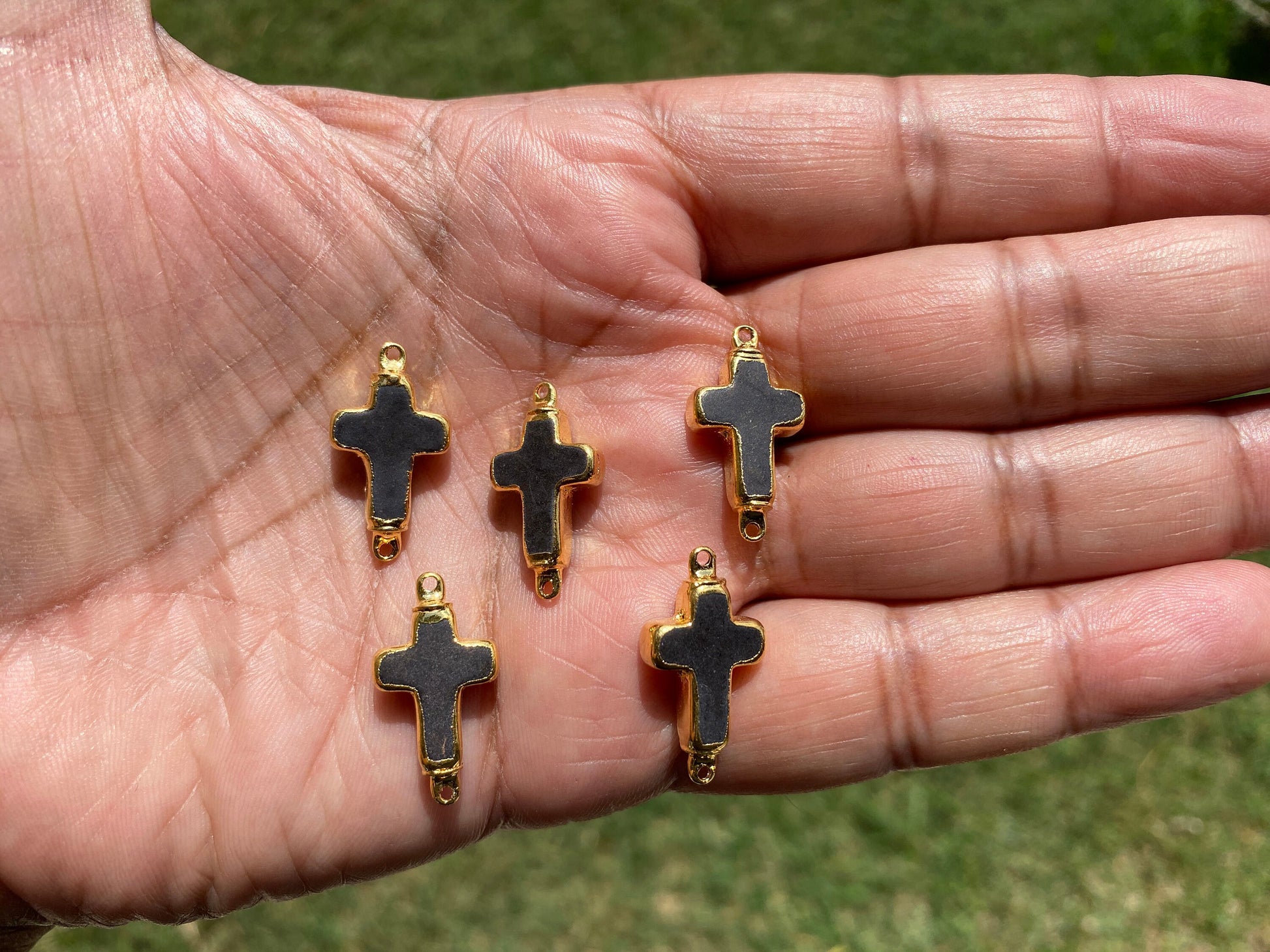 Small Colored Turquoise Cross Charms,Two Side Bails, 18K Gold Electroplated.Cross Pendant for Dainty Chain, Charms for Bracelet, For Earring