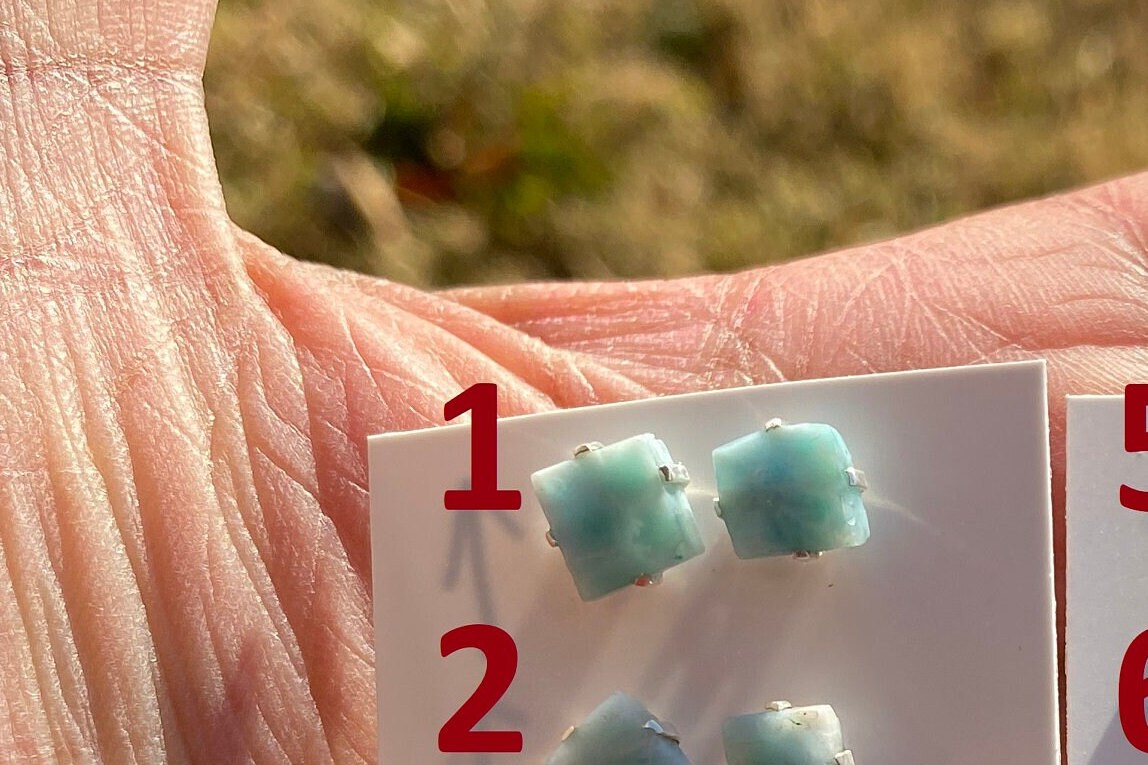 Small Raw Larimar Stud Earrings Sterling Silver, Larimar Earrings, Larimar Jewelry, Raw Larimar Stone, Raw Larimar Slab, Raw Larimar Crystal
