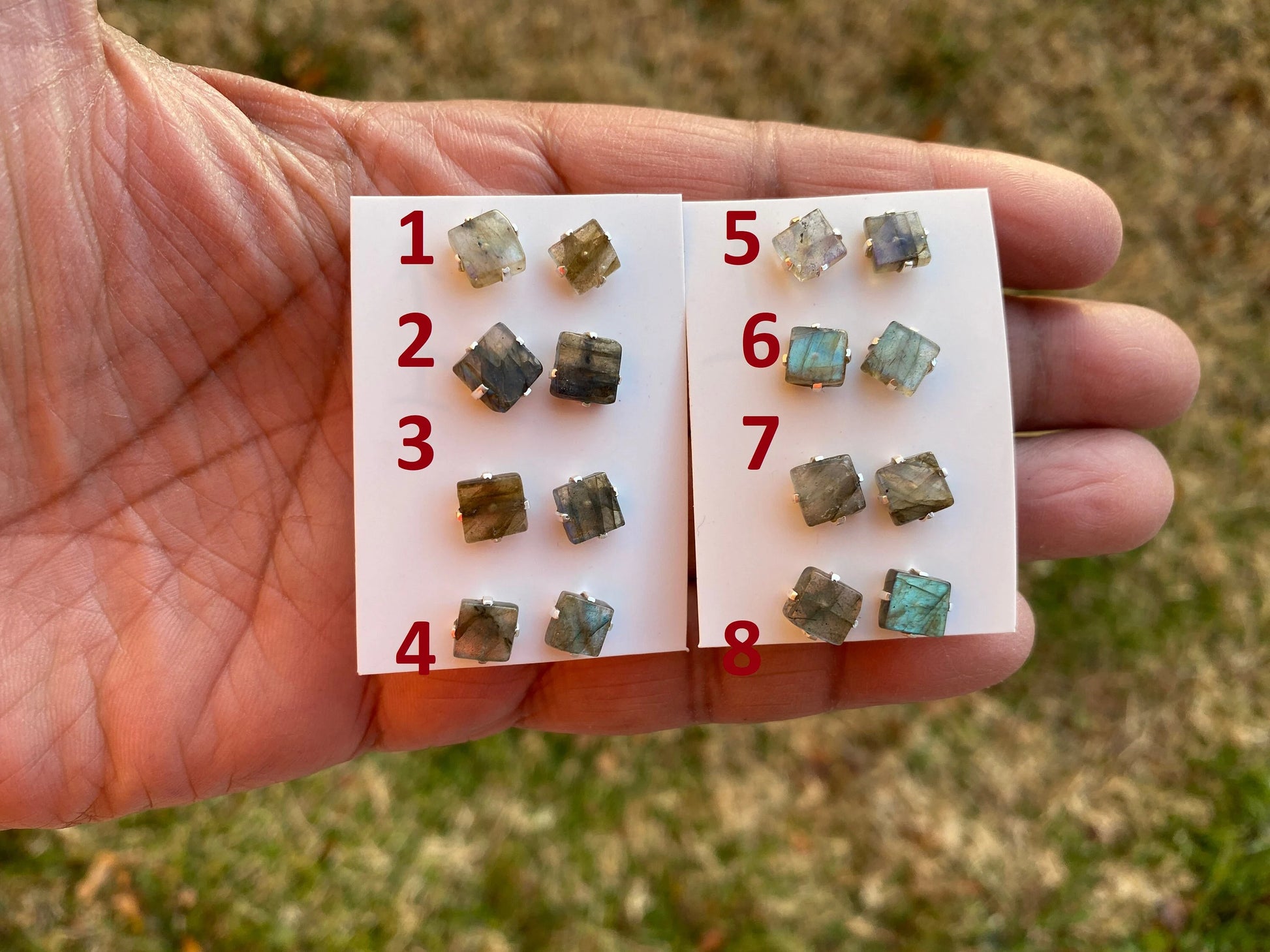 Small Raw Natural Labradorite Sterling Silver Stud Earrings, Rough Gemstone Prong Earring, Tiny Labradorite Stone Earrings, Birthday Gift