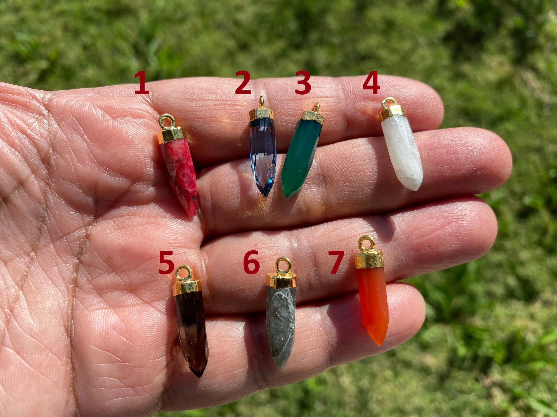 Small Spike Dagger 18K Gold Electroplated with Sterling Silver Bail, Birthstone Pointed Gemstone, Gold Rim Bezel Pendant, Gold Edge Stone