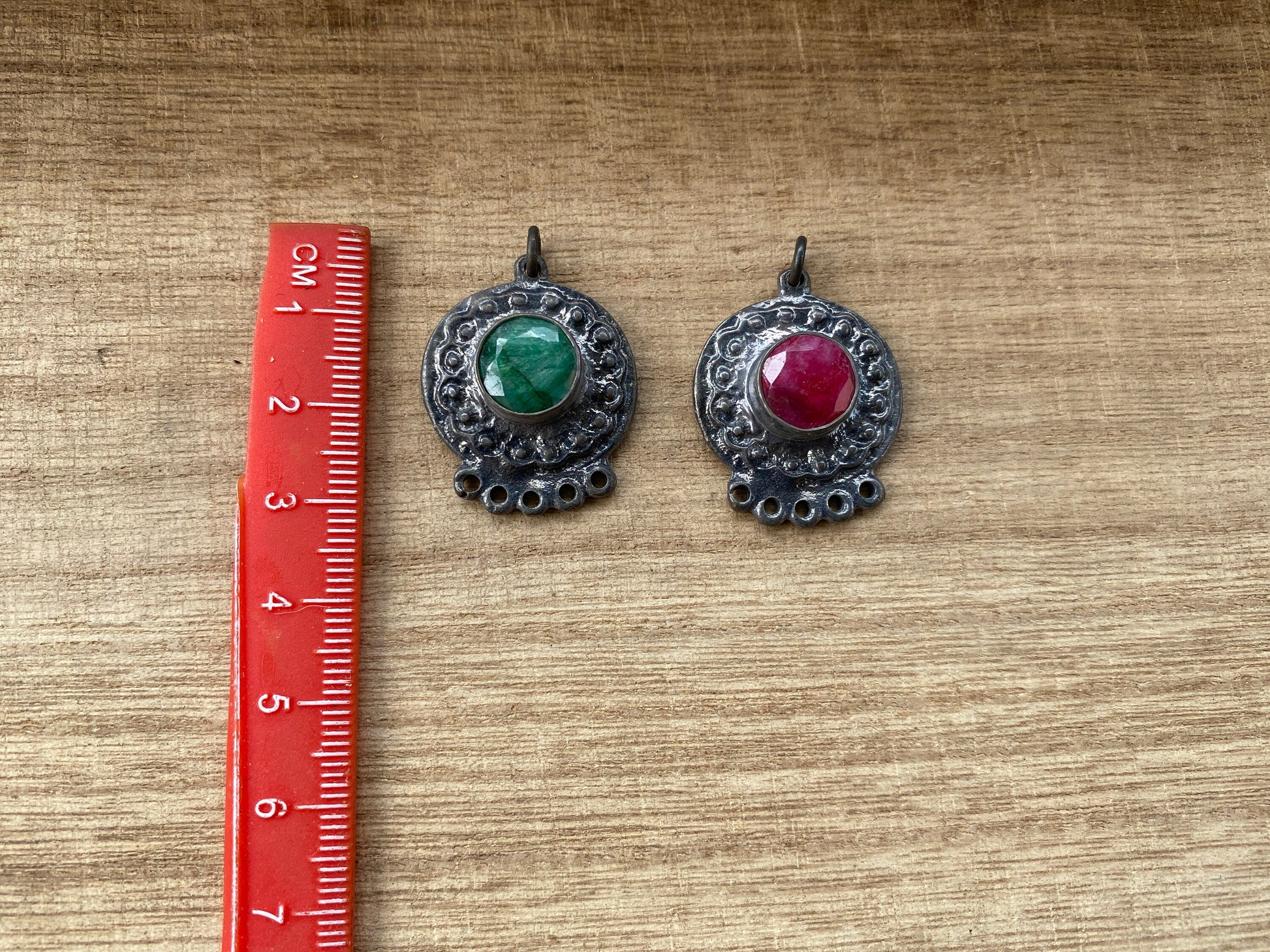 This listing is for 1 piece.At wholesale price!!!Made with Oxidize Brass & Emerald or Ruby Gemstone Pendant. These are sure to make an impact on your jewelry project. This pendant would be a great addition to your necklace, would look great strung on beaded necklace, chain, mala or you can make beautiful earring too.