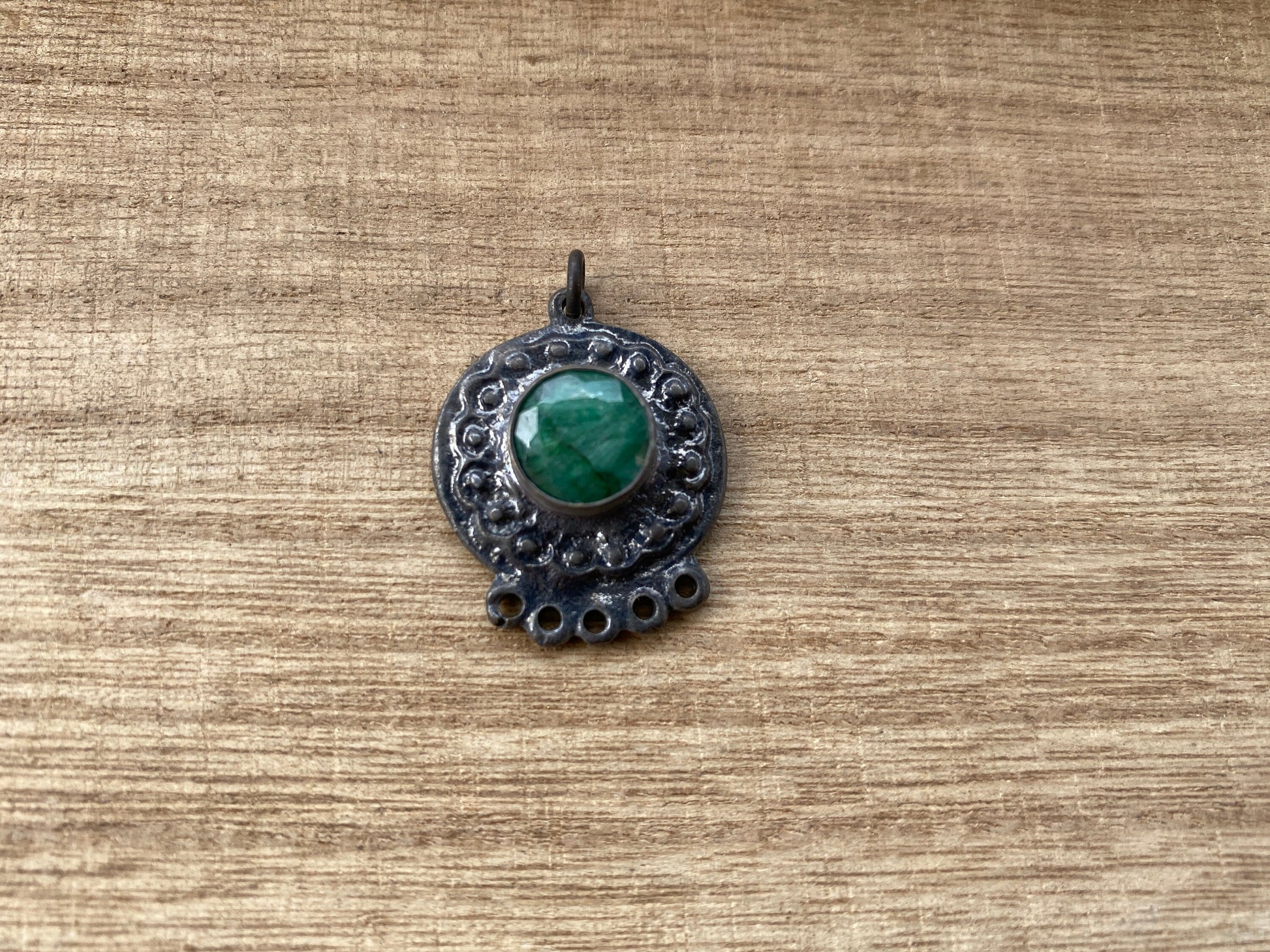 Small Tribal Gemstone Pendant, Oxidize Brass, Emerald Charm, Ruby Tibetan Pendant, Charm for Earring/Necklace/Bracelet, Handmade in Nepal,