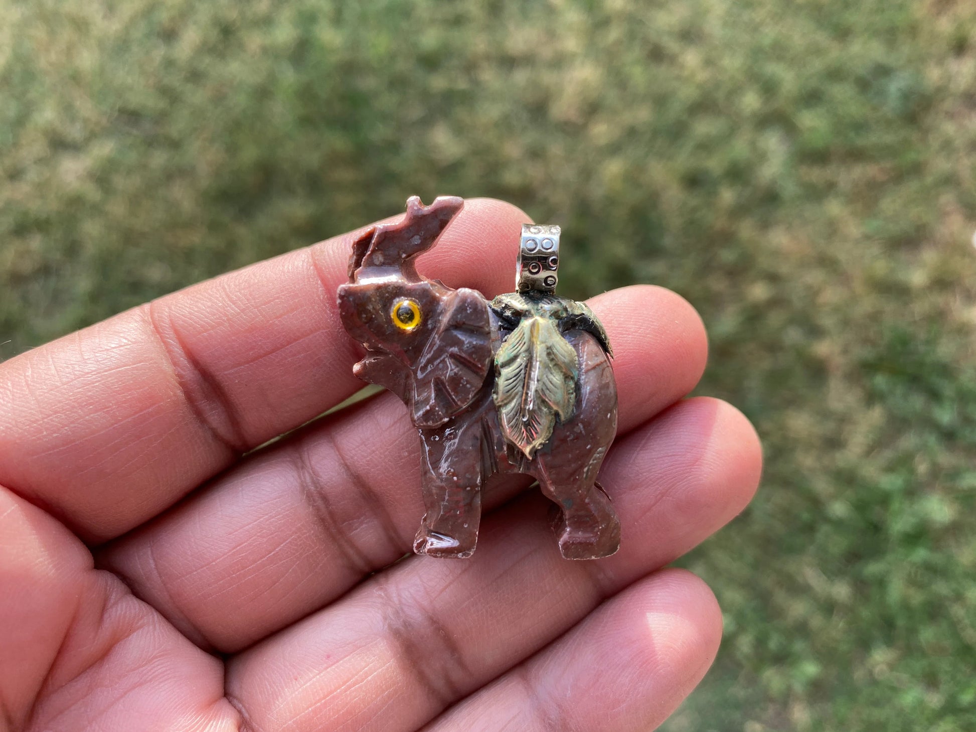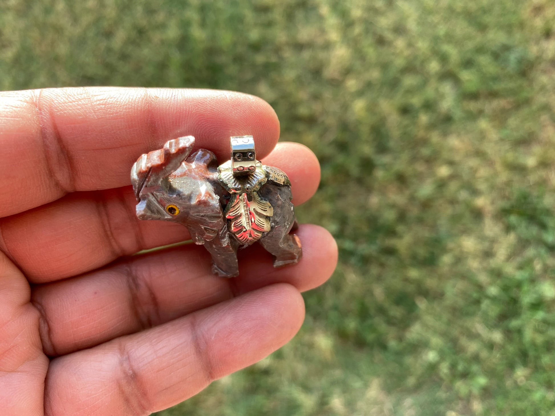 Soapstone Carved Elephant Tibetan Silver Pendant, Carved Elephant Jewelry, Stone Totem Animal, Spirit Animal Gift, Animal Lover's Jewelry