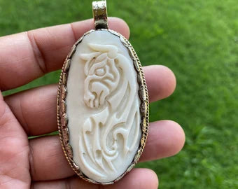 This Gorgeous Buffalo Bone Hand Carved Taurus Zodiac Signs pendant with a remarkable details carved Flower design on the back side of the Pendant. This Tibetan designs pendant is handmade in Nepal and adorned by a beautiful pendant. Perfectly bohemian in style, these tribal beauties come from the Himalayas. Beauty of this pendant that is unmatched as they are handmade and are one of a kind. With the nature of them being handmade, each product is unique in its own right and no two products are the exact same.