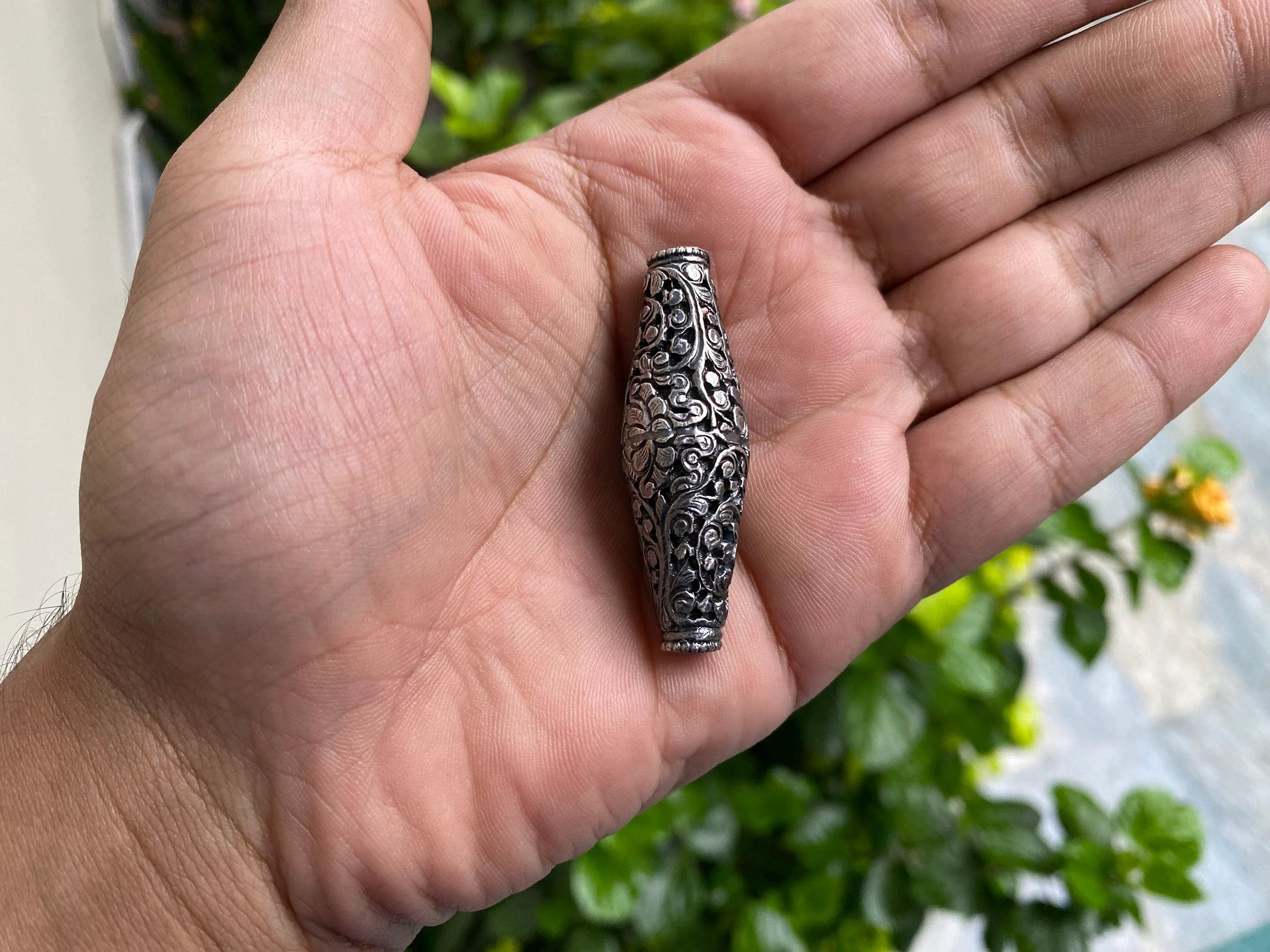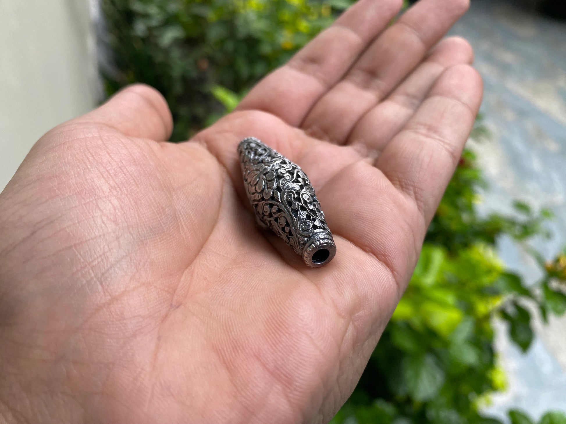 This listing is for 1 piece.At wholesale price!!! Measurement: approximately length 50 mm Bicone shape (measuring from hole to hole), width 16 mm from the widest side, hole size: 4 mm and weighs about 12 gm. Handcrafted in Nepal, these Tibetan beads are made of...
