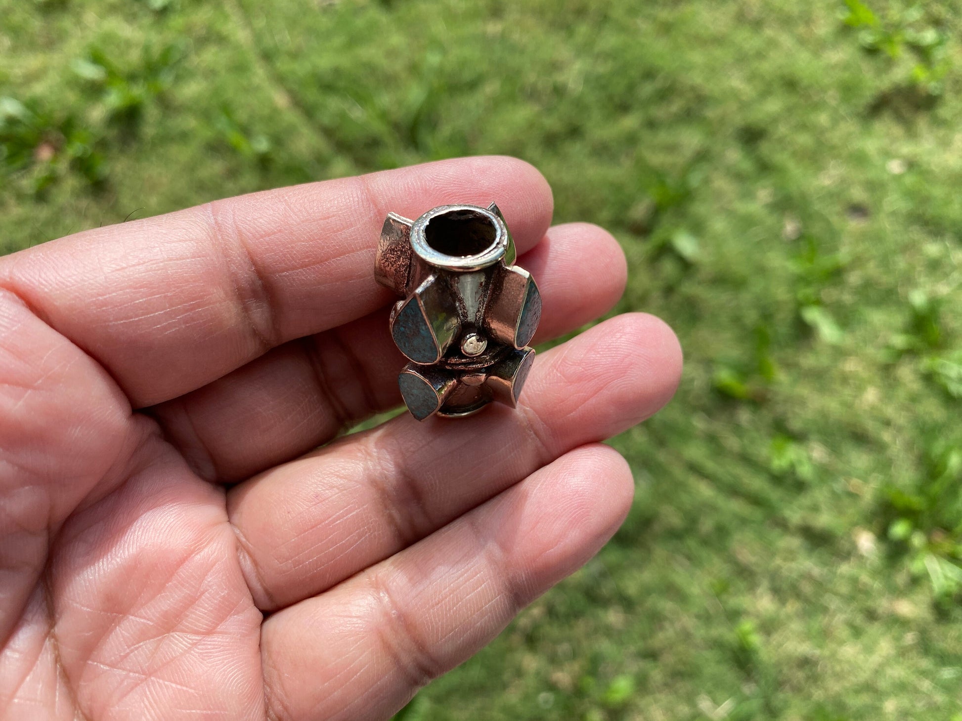 Measurement: approximately Length 30 mm ( measuring from hole to hole ), width 20 mm from the widest side, hole size: 11 mm and weight about 12.00 gm.