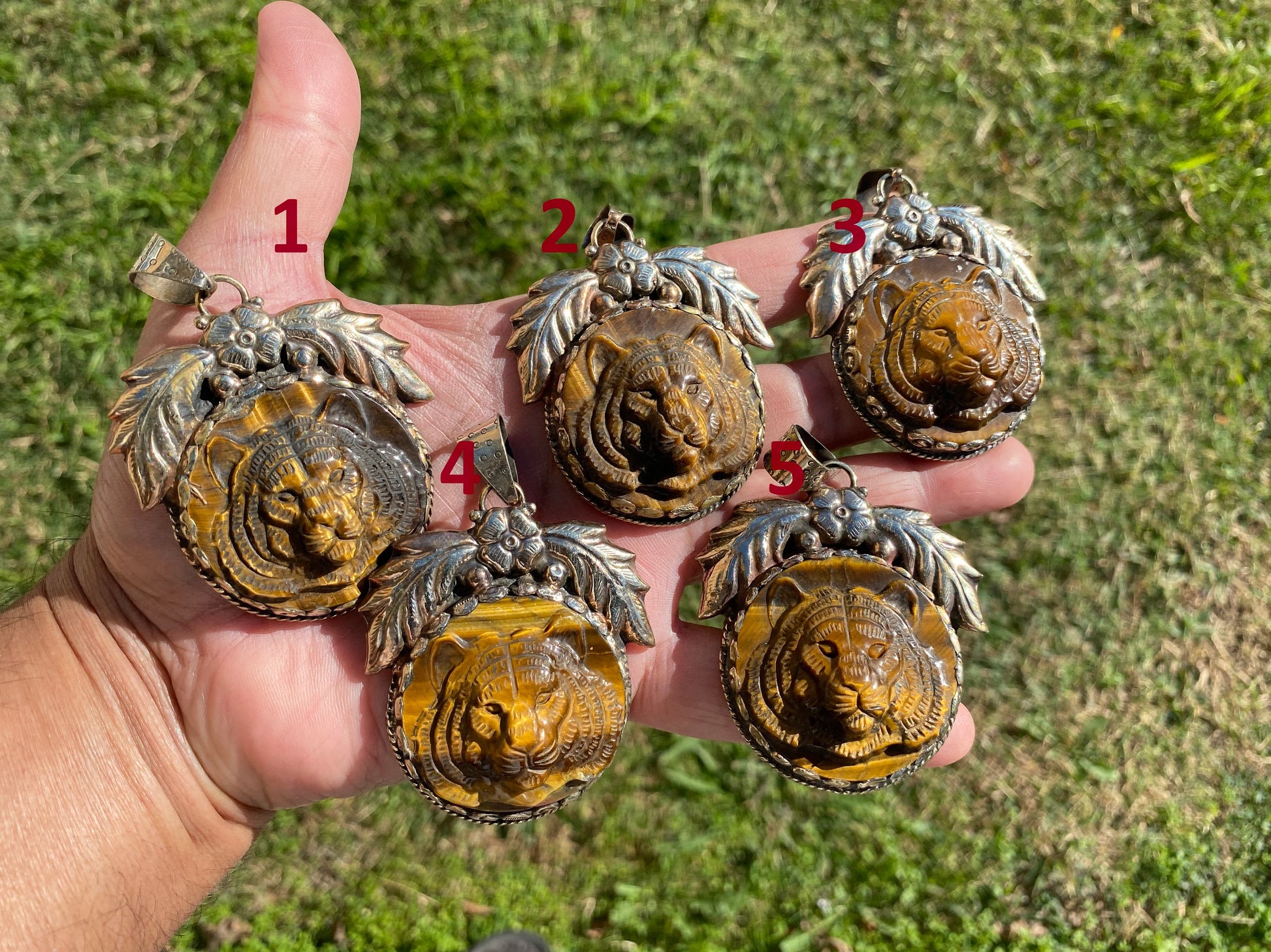 This listing is for 1 piece.At wholesale price!!! Introducing our majestic Carved Tiger Head Tiger Eye Stone Pendant – a powerful embodiment of strength, courage, and natural beauty. This handcrafted pendant features an intricately carved lion head crafted from the mesmerizing Tiger Eye stone, known...