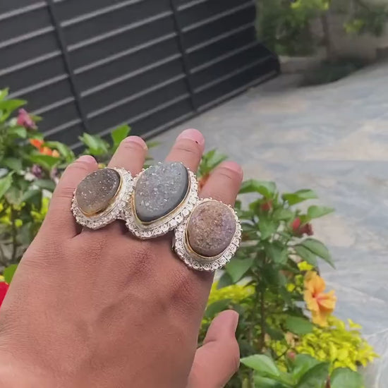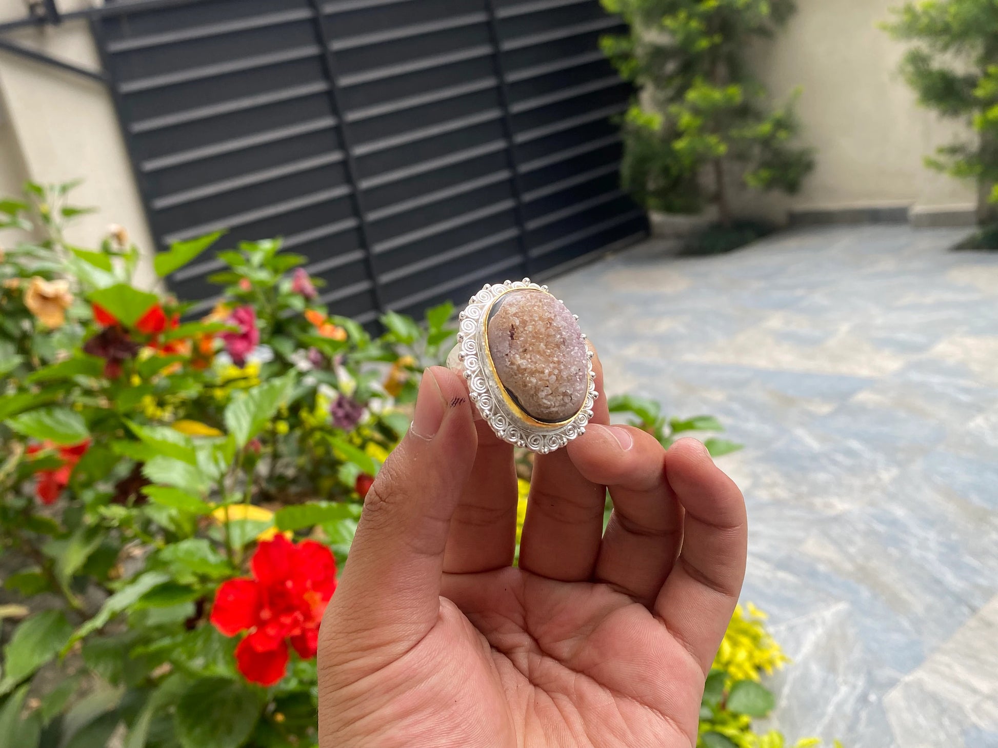 Ring Size: Adjustable (One size fits most) can size up or downStone: Natural Druzy AgateMeasurement: Ring: Approximately 41.00 mm X 27.00 mm ( From widest Side) , Weight: 26.00 gm,