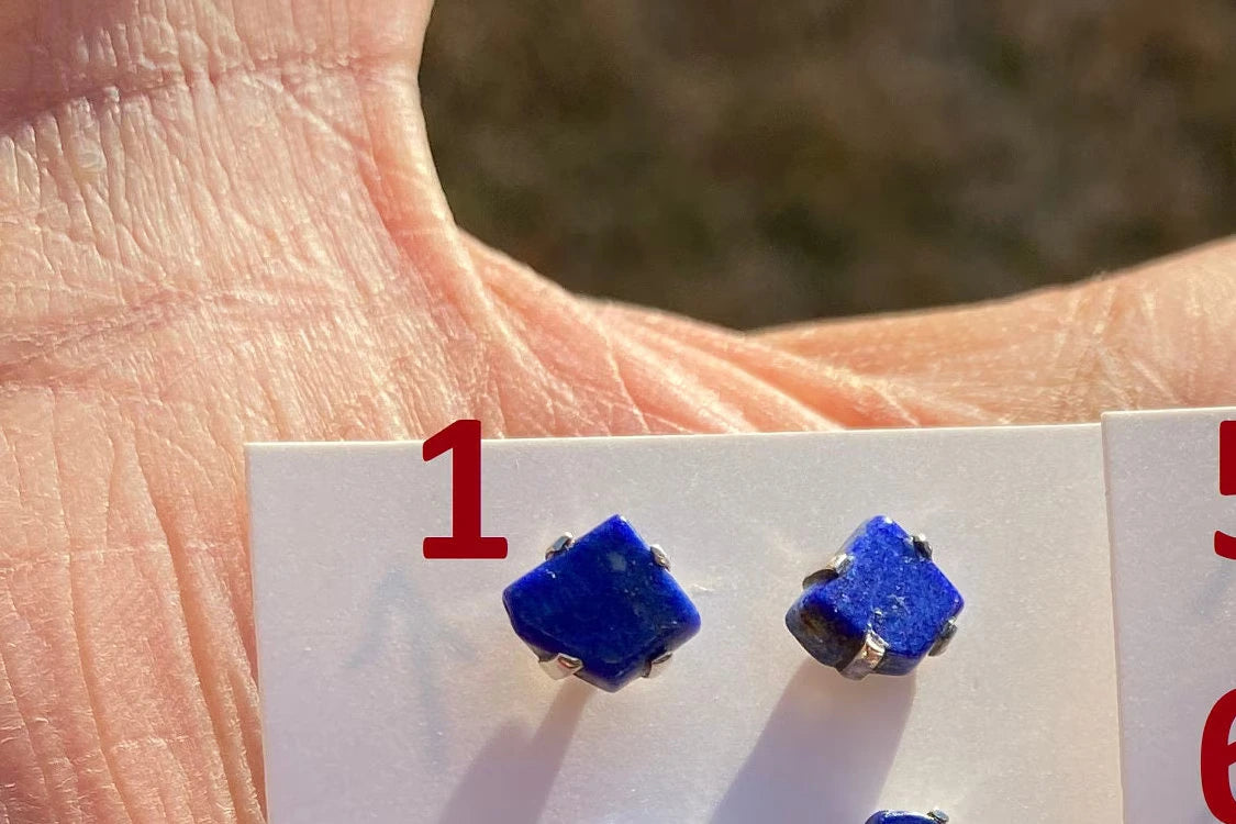 Tiny Lapis Lazuli Gemstone Sterling Silver Stud Earring, Raw Natural Stone, Energy, Protection Jewelry, Handmade Earring, Birthday Gift