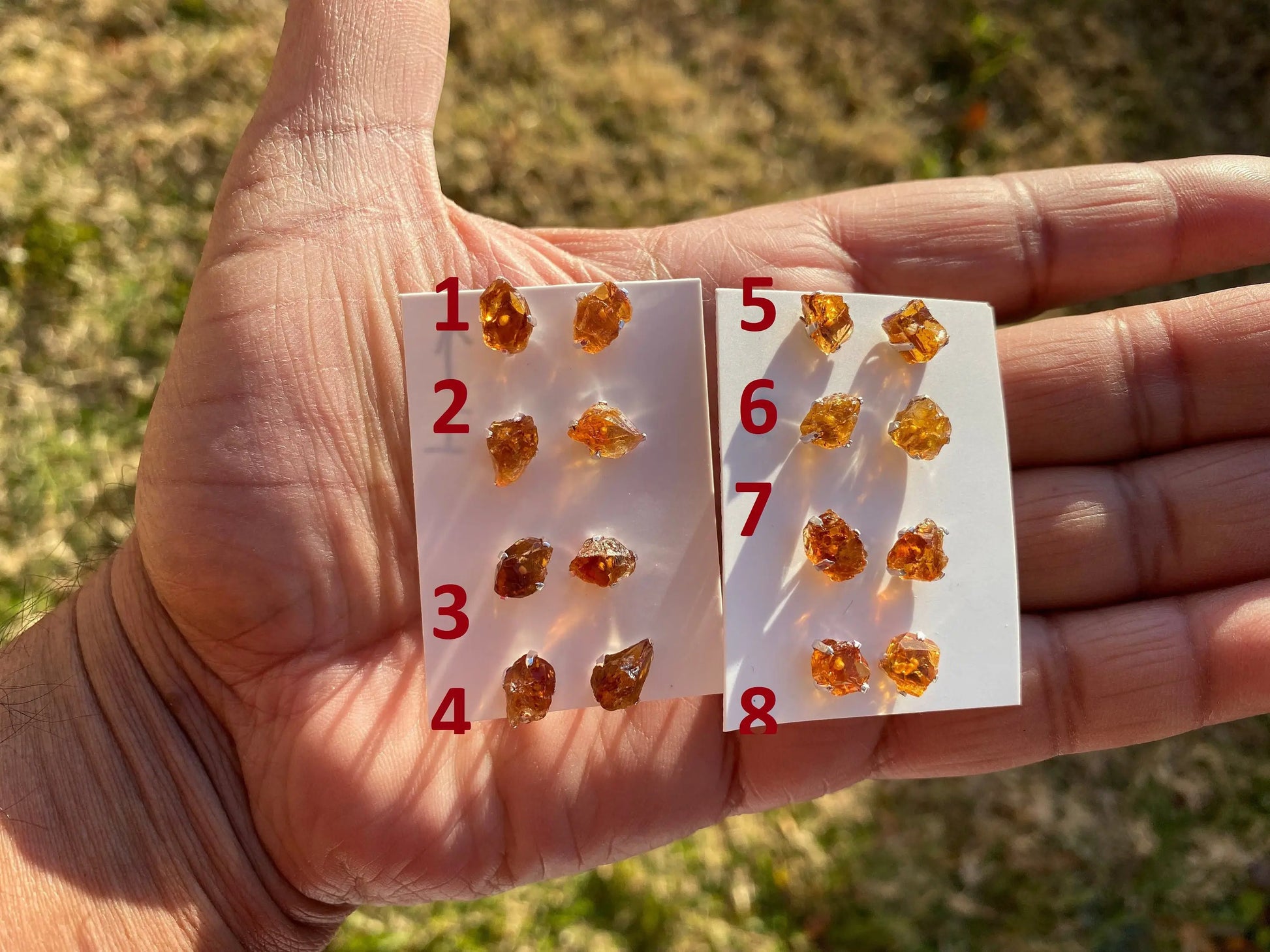 These raw Citrine gemstone Studs Earrings made with 92.5 Sterling Silver Earring were handcrafted in Nepal. A unique gift for NOVEMBER Birthstone.