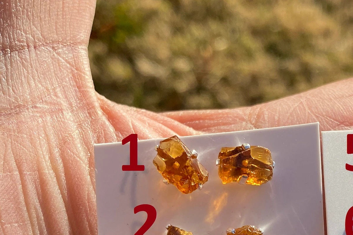 These raw Citrine gemstone Studs Earrings made with 92.5 Sterling Silver Earring were handcrafted in Nepal. A unique gift for NOVEMBER Birthstone.