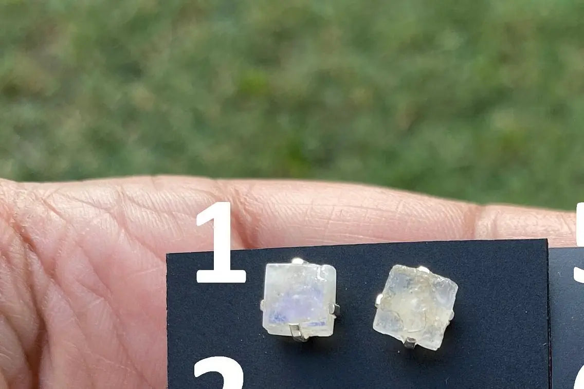 These raw Rainbow Moonstone gemstone Earring Stud made with 92.5 Sterling Silver Earring were handcrafted in Nepal. A unique gift for June Birthstone.