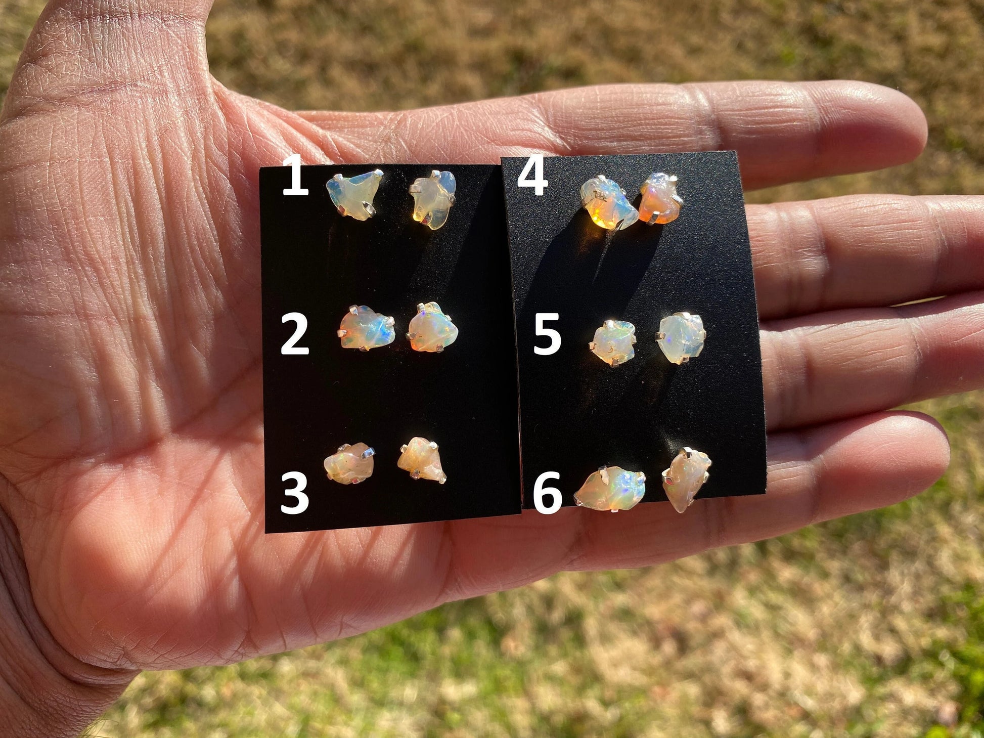 Tiny Raw Natural Opal Stud Earrings, 92.5 Sterling Silver Earrings, Raw Gemstone Stud, Raw Opal Earrings, October Birthstone, Ethiopian Opal