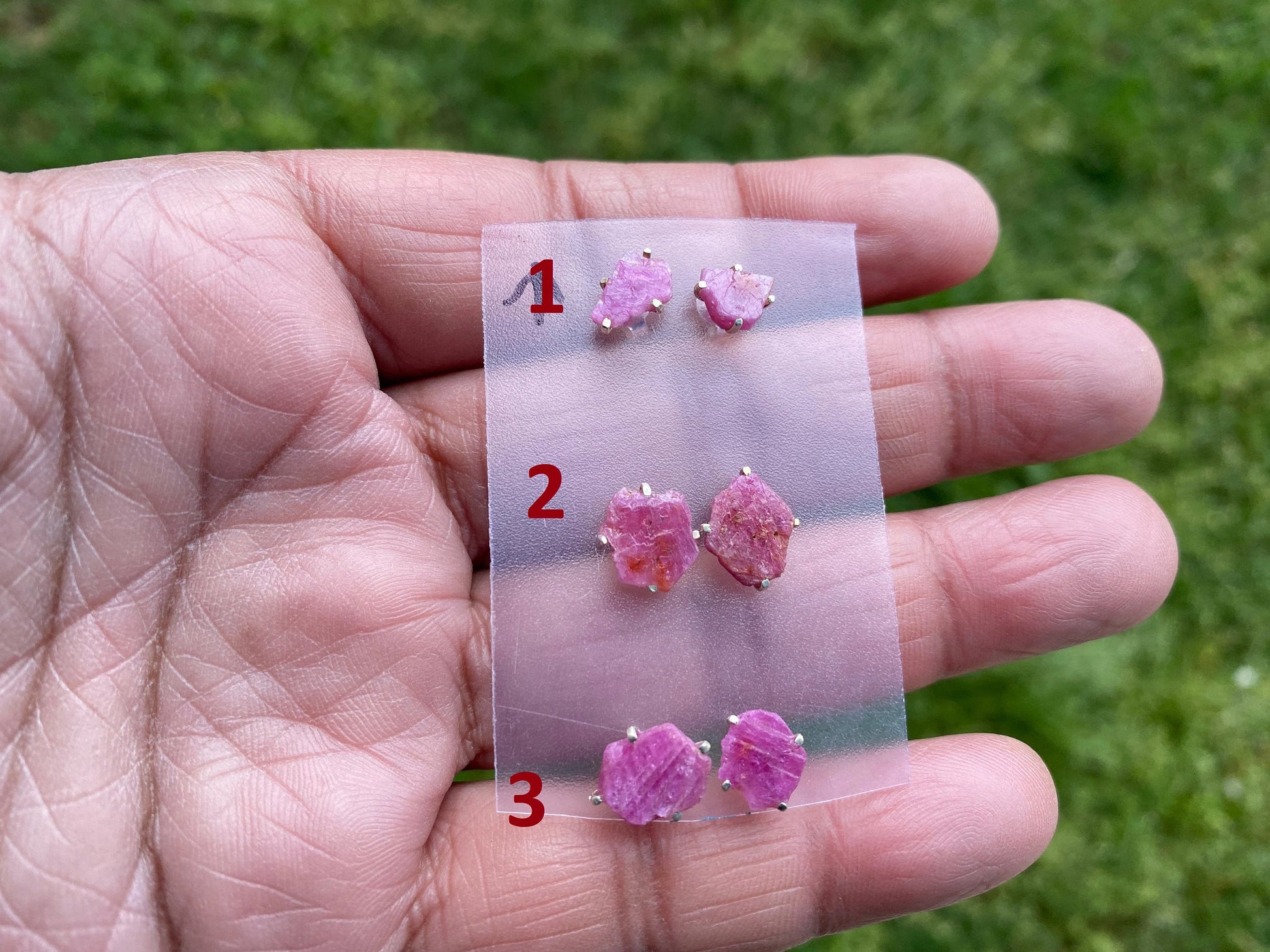 This listing is for 1 pair.At wholesale price!!! These raw Ruby gemstone Earring Stud made with 92.5 Sterling Silver Earring were handcrafted in Nepal. A unique gift for JULY Birthstone. Measurement of Stone approximately 6-9 mm long, 4-7 mm wide (measuring the widest part of...