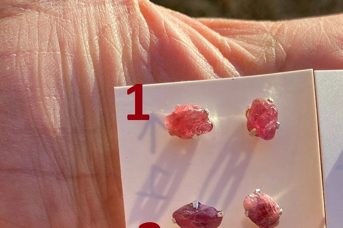Tiny Raw Ruby Gemstone Stud Earrings, Sterling Silver Earrings, July Birthstone, Rough Ruby, Prong Stud, Healing Crystal Earring, For Girls