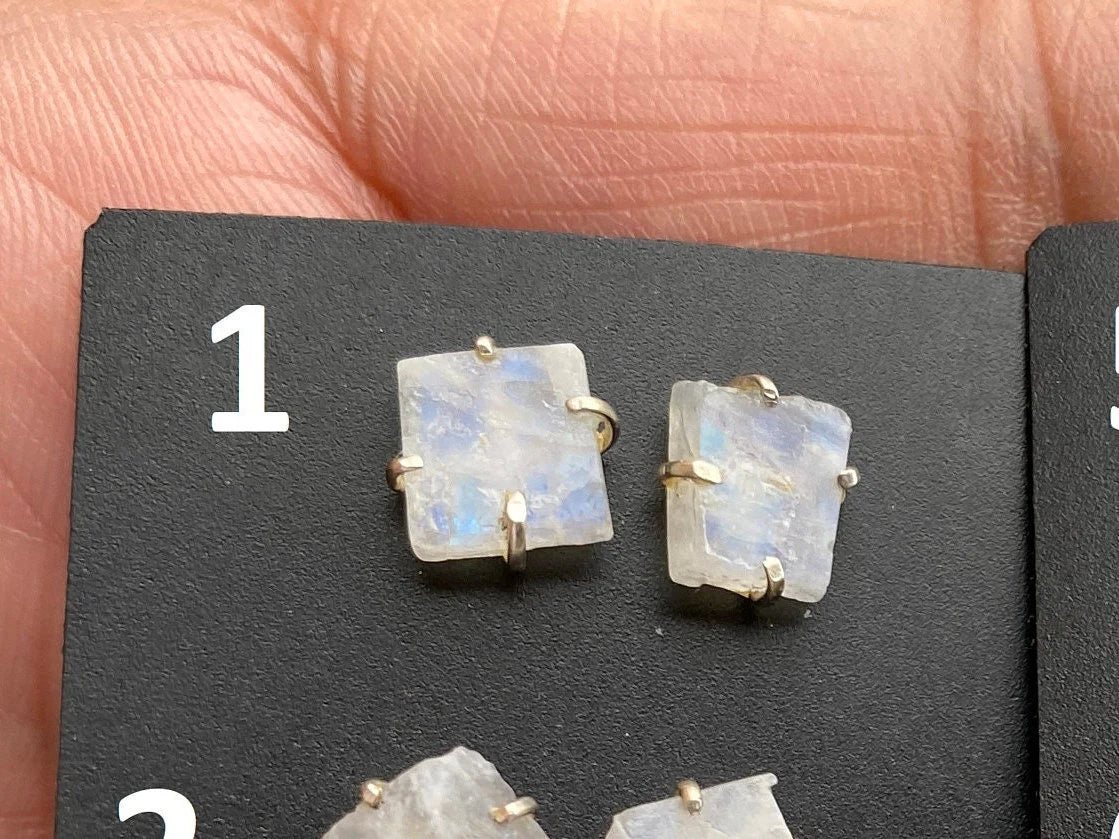 Tiny Rough Rainbow Moonstone Stud Earrings, Sterling Silver Earrings, Prong Stud Earring, Moonstone Earrings, Crystal Studs, June Birthstone