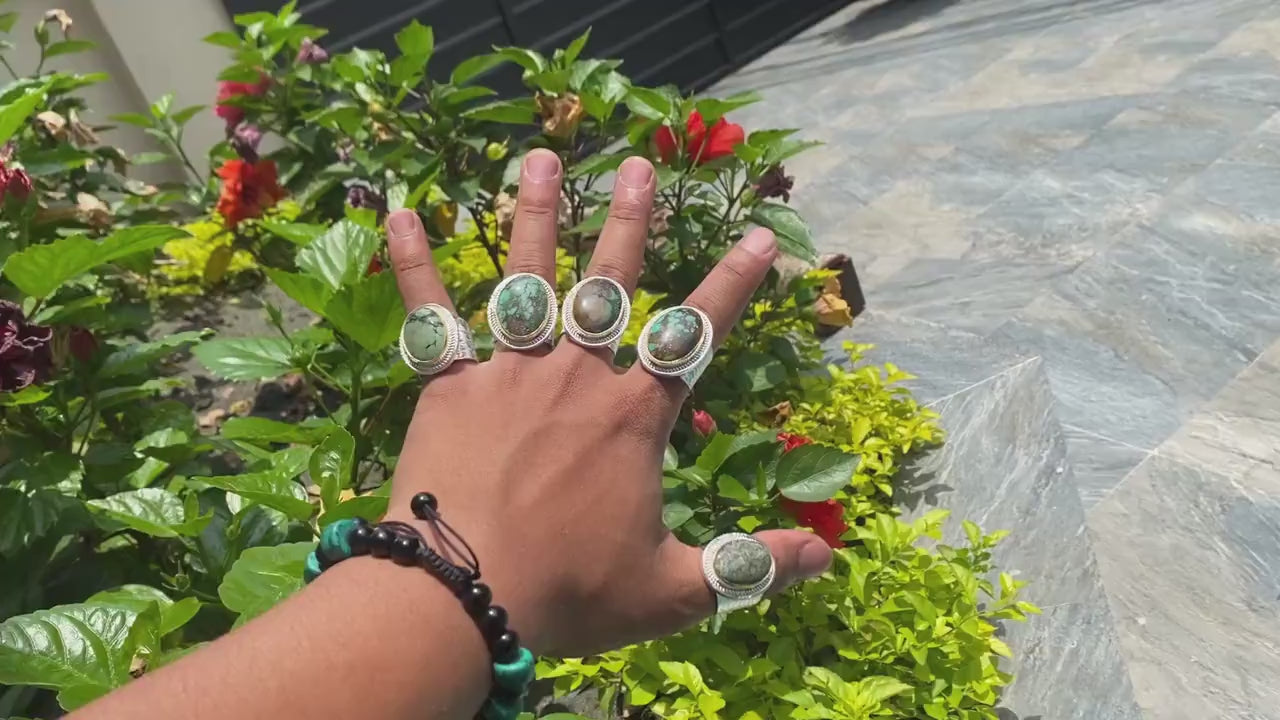 This handmade Nepali Ring was made by very skillful Nepali Artisans, enjoy the essence of ethereal elegance of our Oval Natural Turquoise Adjustable Ring. This piece embodies the free-spirited charm of hippie fashion, exuding timeless allure and bohemian flair. Its antique design adds a touch of vintage sophistication, making it the perfect gift for those who appreciate artisanal craftsmanship and unique style statements.