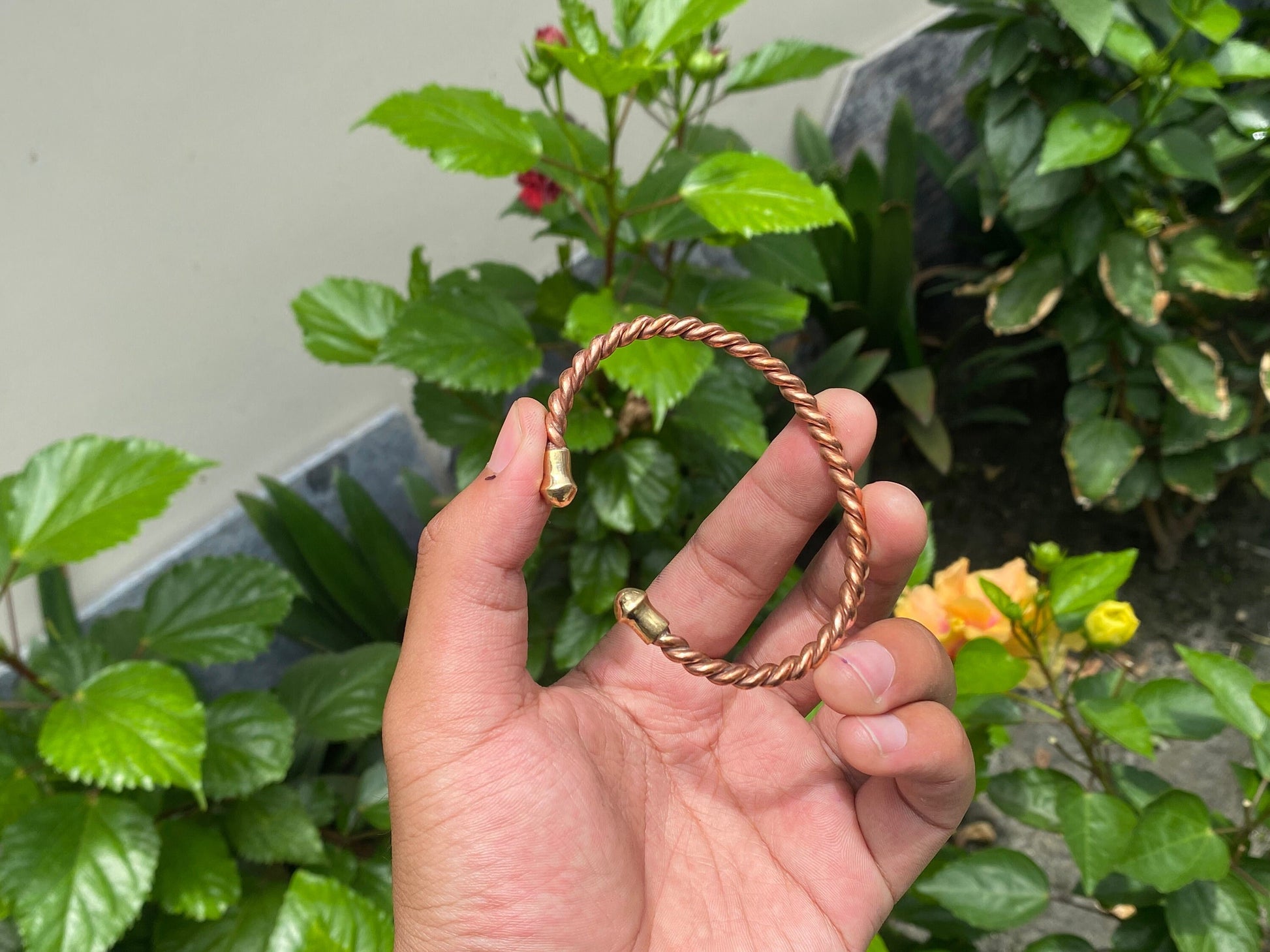 Twisted Copper Bracelet with Brass Cap, Healing Bracelet, Bracelet for Daily Wear, Meditation, Gift and Positivity, Unisex Bracelet.