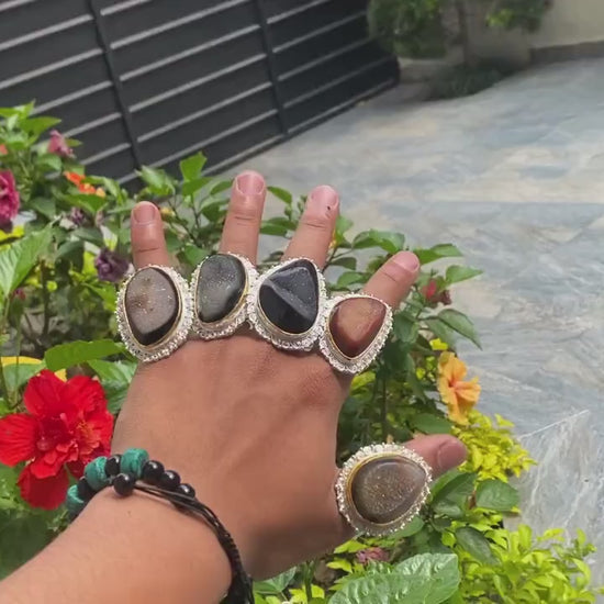 Ring Size: Adjustable (One size fits most) can size up or downStone: Natural Druzy Agate.Measurement: Ring: Approximately 49.00 mm X 35.00 mm ( From widest Side) , Weight: 30.00 gm,