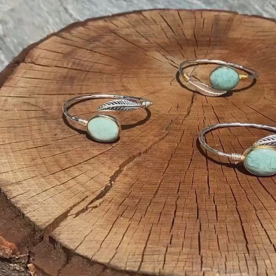 Elevate your style with our exquisite hammered leaf designed bracelet, adorned with captivating turquoise stones. Crafted in Nepal, this unique piece features a blend of gold and silver overlay for an elegant touch. Its adjustable design ensures a comfortable fit for daily wear, making it a perfect gift for those who appreciate trendy and aesthetic accessories.