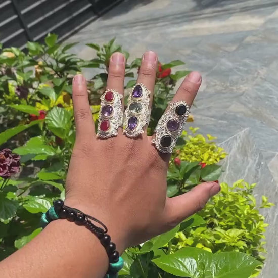 Ring Size: Adjustable (One size fits most) can size up or downStone: Natural Ruby, Black Onex , AmethystMeasurement: Ring: Approximately 50.00 mm X 21.00 mm ( From widest Side) , Weight: 27.00 gm,