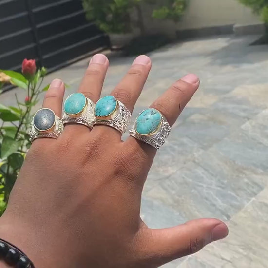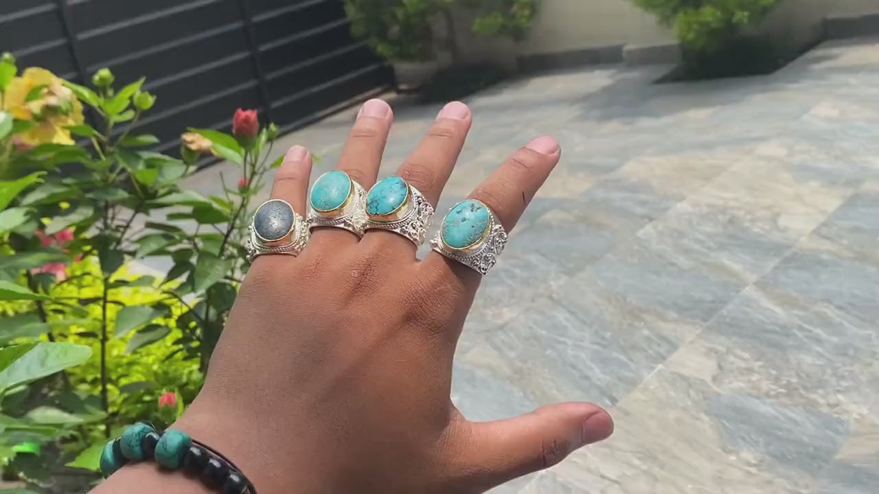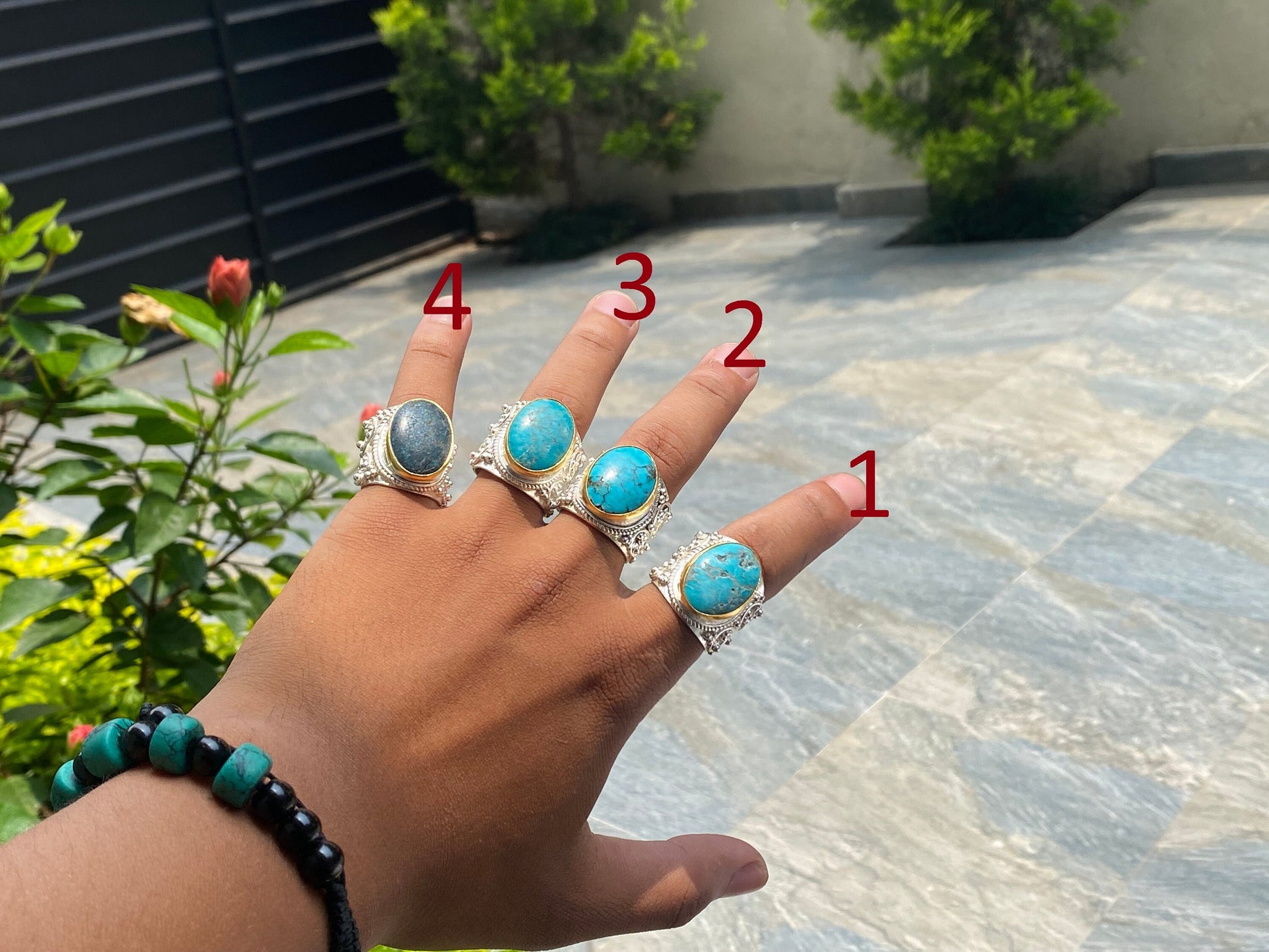 Ring Size: Adjustable (One size fits most) can size up or downStone: Natural Turquoise Measurement: Ring: Approximately 90.00 mm X 25.00 mm ( From widest Side) , Weight: 14.00 gm,