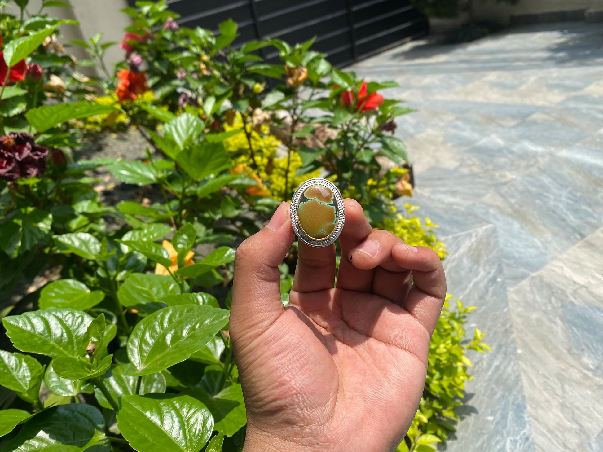 Ring Size: Adjustable (One size fits most) can size up or downStone: Natural Turquoise Measurement: Ring: Approximately 28.00 mm X 20.00 mm ( From widest Side) , Weight: 14.00 gm,