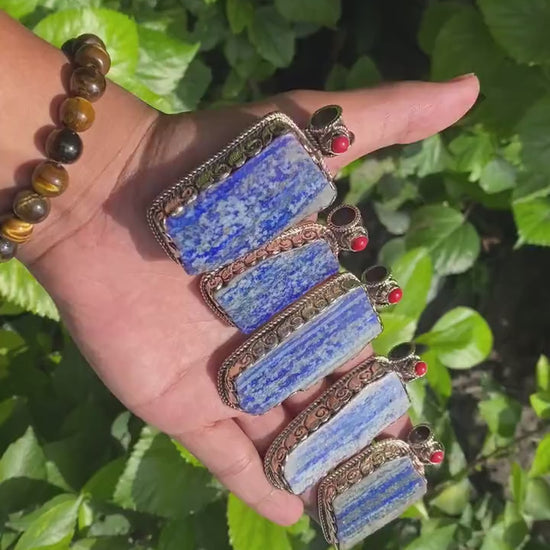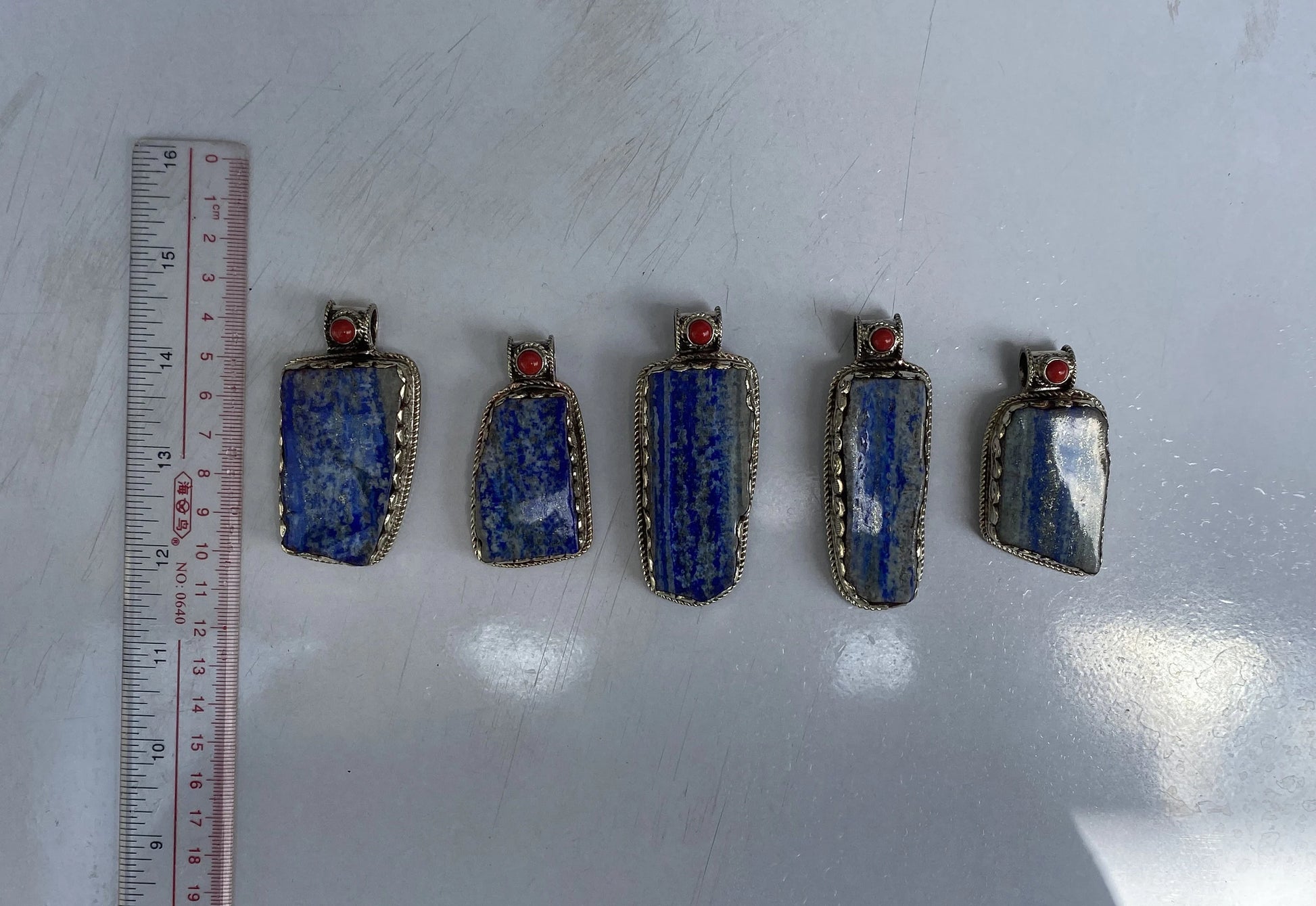 This is a unisex pendant, done in a charming combination of deep blue lapis and vibrant coral, set into hammered silver. The inlaid design has a floral profile, giving it real nature-based elegance, just great for standing out with statement artist's pieces. Ideal for a...
