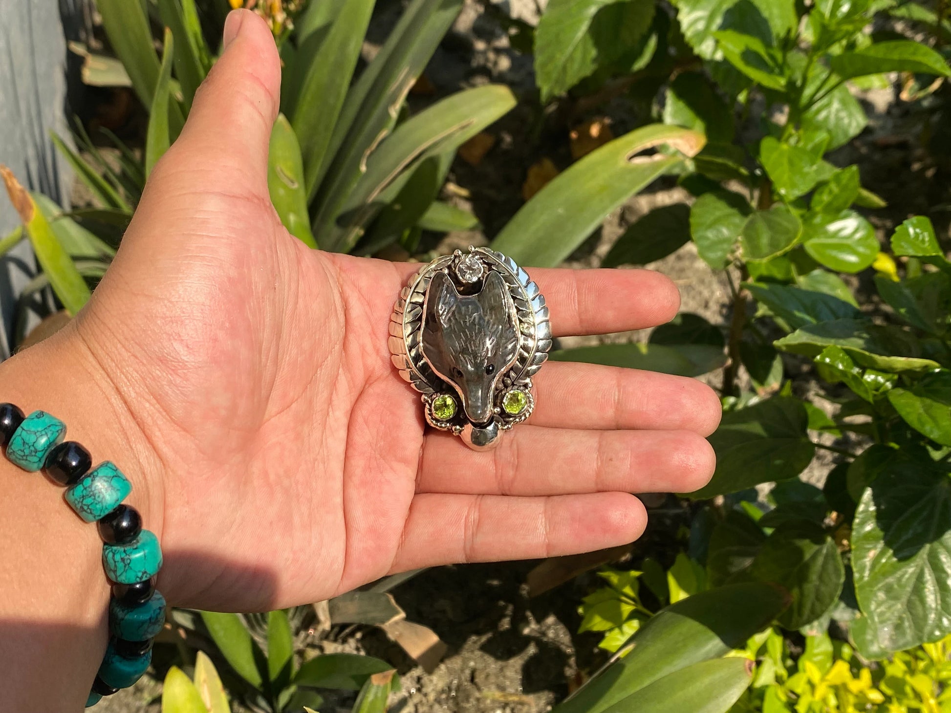 Wolf Head Rings: Symbolic Animal Skull Jewelry, Adjustable Ring, Crystal ring, Tibetan silver ring.
